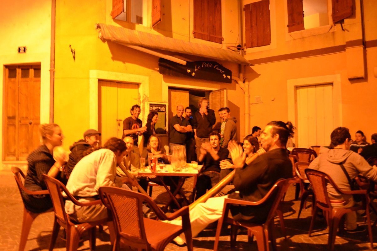 Les organisateurs m'ont obligé à stationner là: Sans avoir le droit de faire les 200 m qui me séparaient du camping: C'est vraiment le camping du "Pont La Joie", tant tout est parfait, et qu'il serait litanie de tout en dire. Un soir, en campagne "Photos", j'entre dans une petite place où je me fais happer par des locaux.