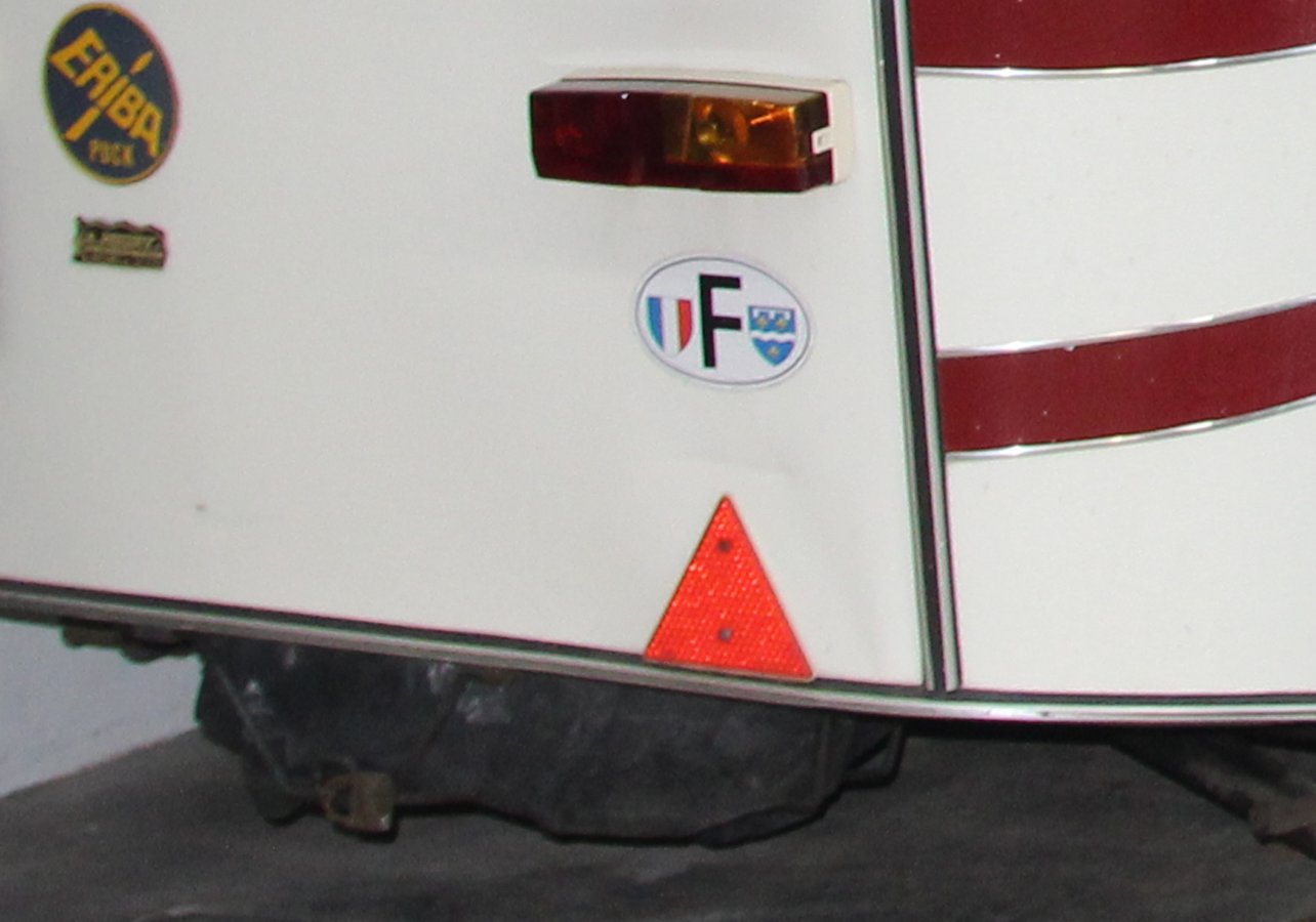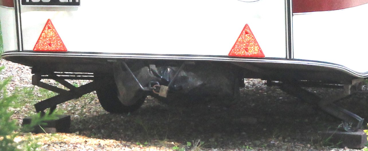 Panier de roue de secours qui ne dépasse pas de la caravane. Comme toi Puck de 79.