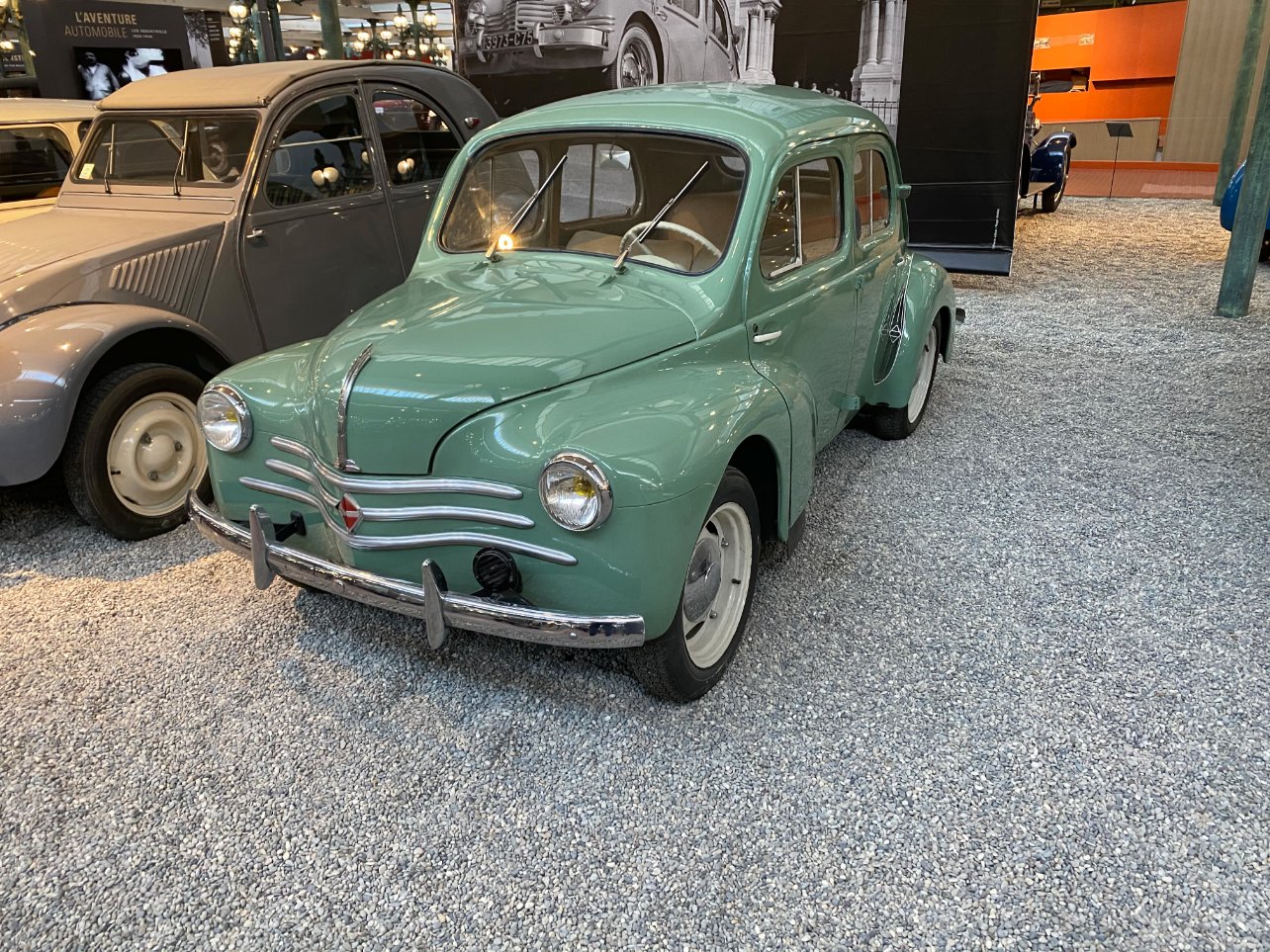 j'ai vu une Renault 4 cv comme avait mon père et ma première auto après le permis une 4 L encore que celle exposée était une export avec la baquette rembourré et en skaï .