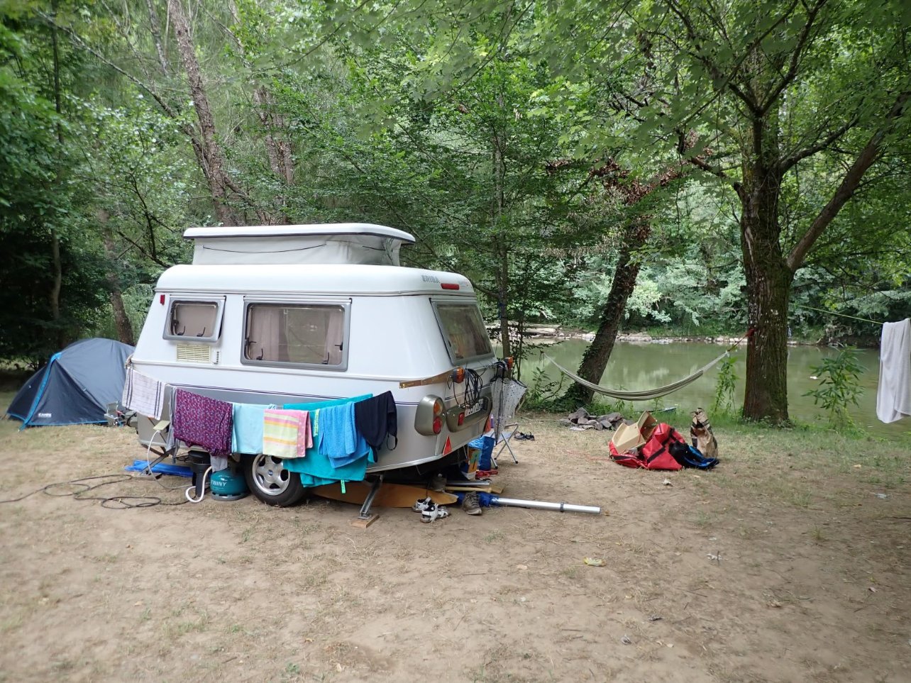Super camping. Ambiance tranquille mais sympa au bord d'une petite rivière.
