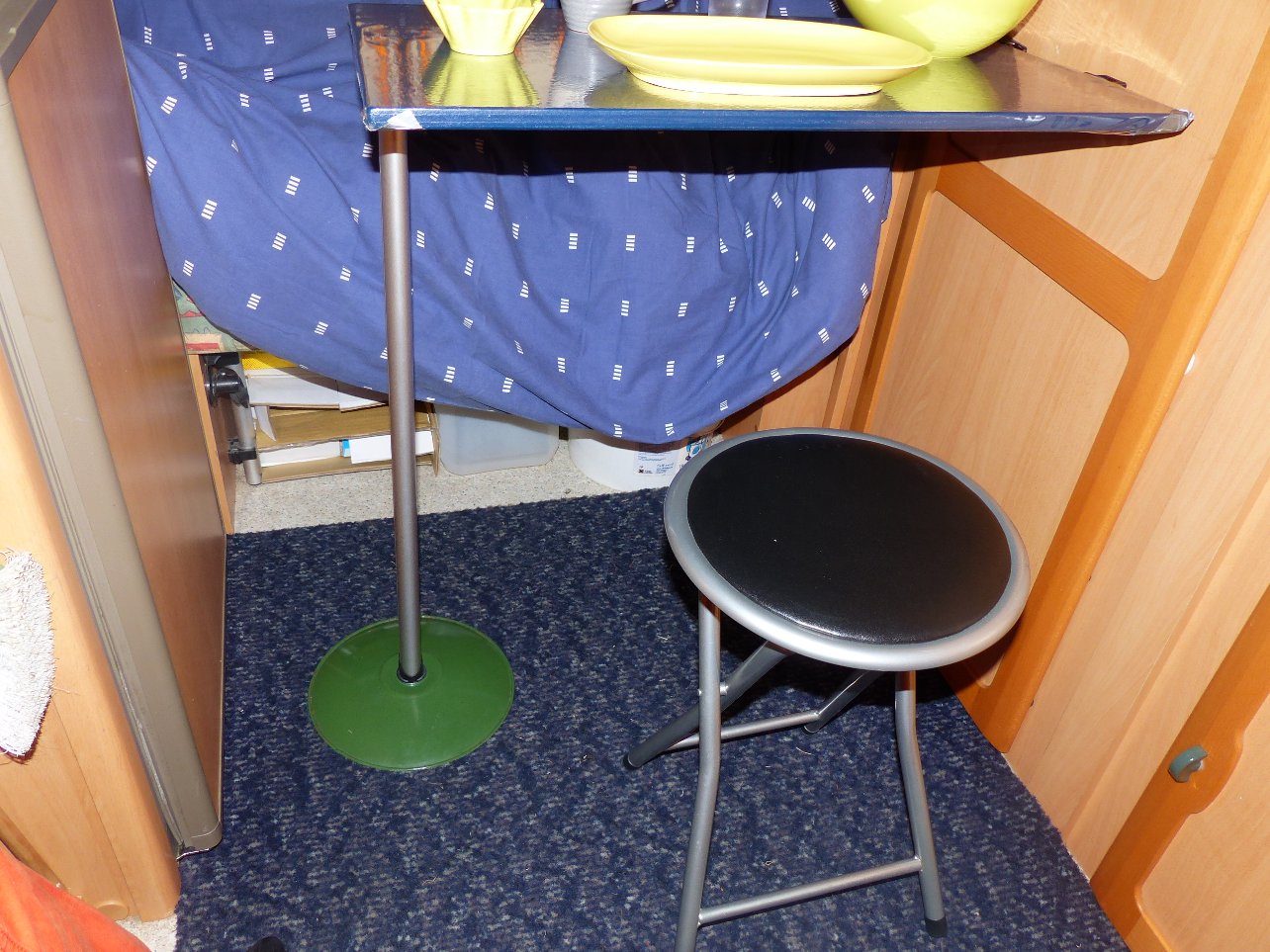 Il a même une mini table au cas z'où, pour manger dedans, un assis sur le lit l'autre sur un tabouret;