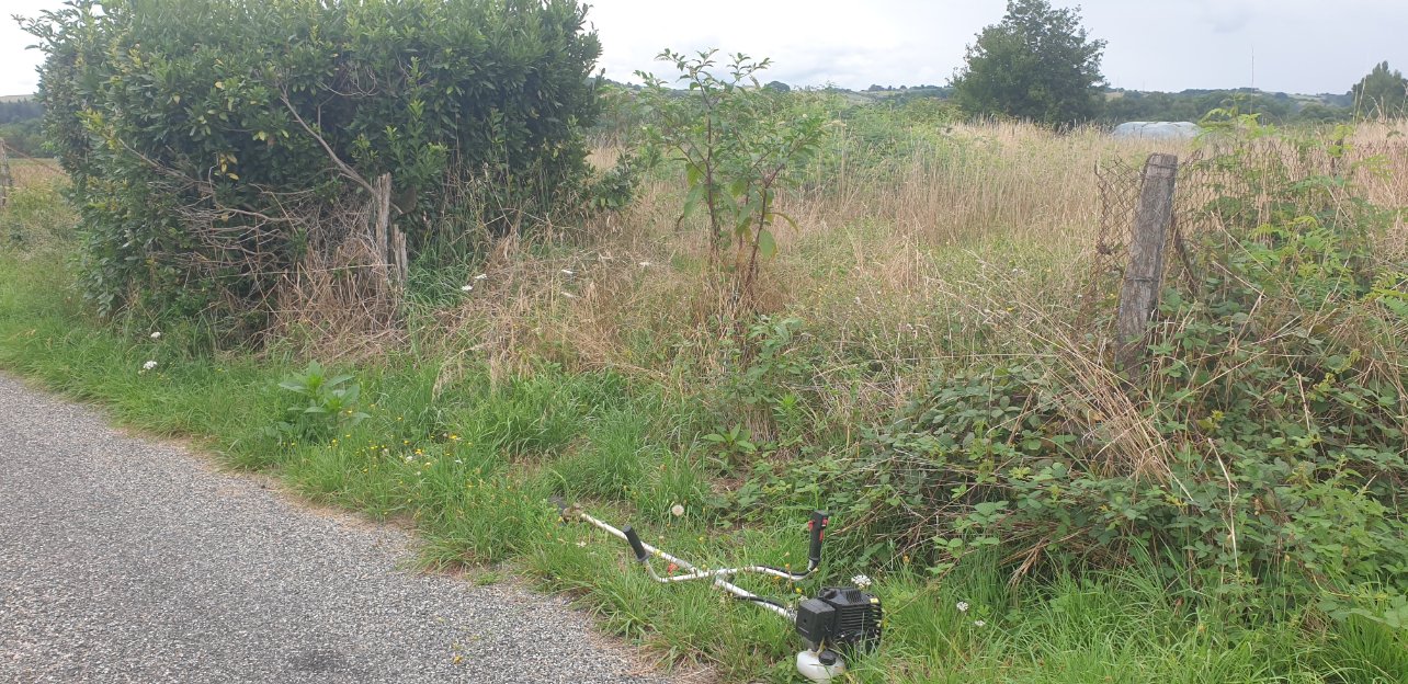 J'ai récemment débroussaillé le terrain que je viens d'acheter dans l'Ariège. Il y avait un peu de travail, voici une photo au départ: En bordure du grillage (sur la droite de la photo) j'ai pas mal de ronces.
