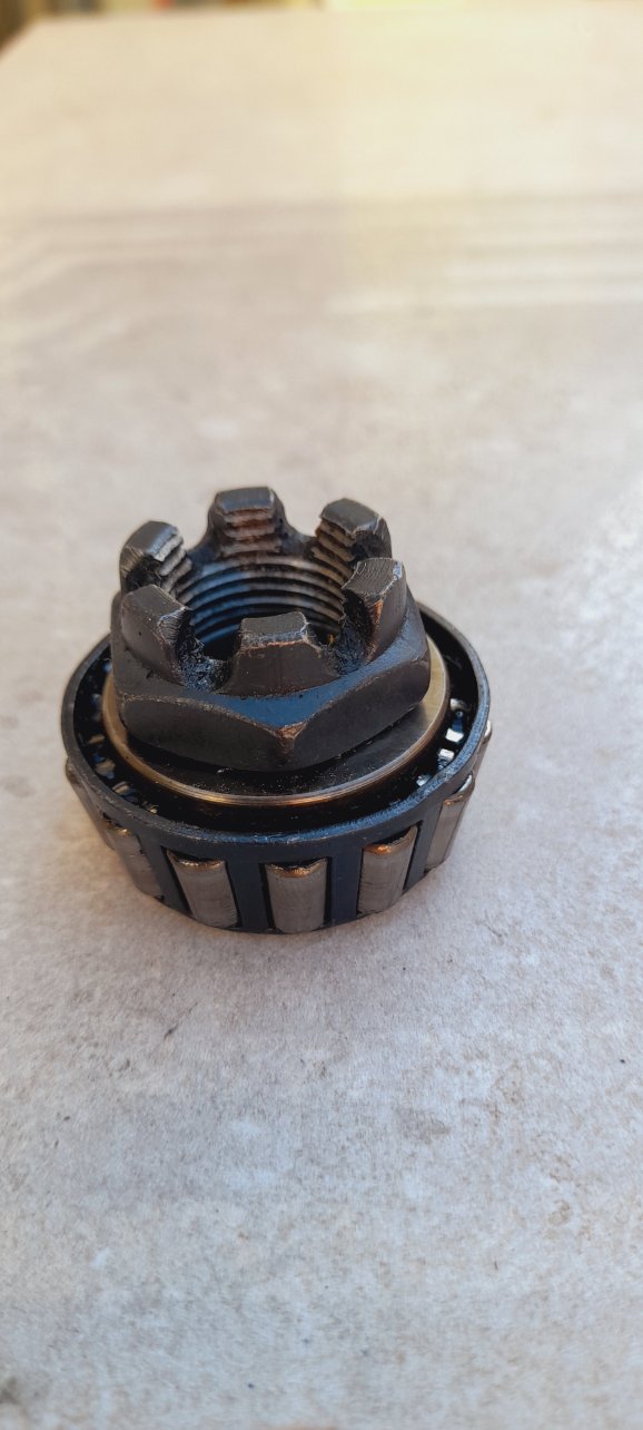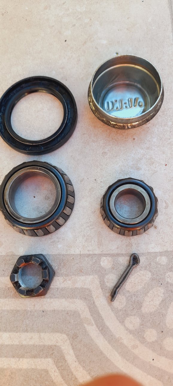 Pour les roulements coniques une fois nettoyés ils me semblent corrects. Pas de jeu, ni trace d'usure.