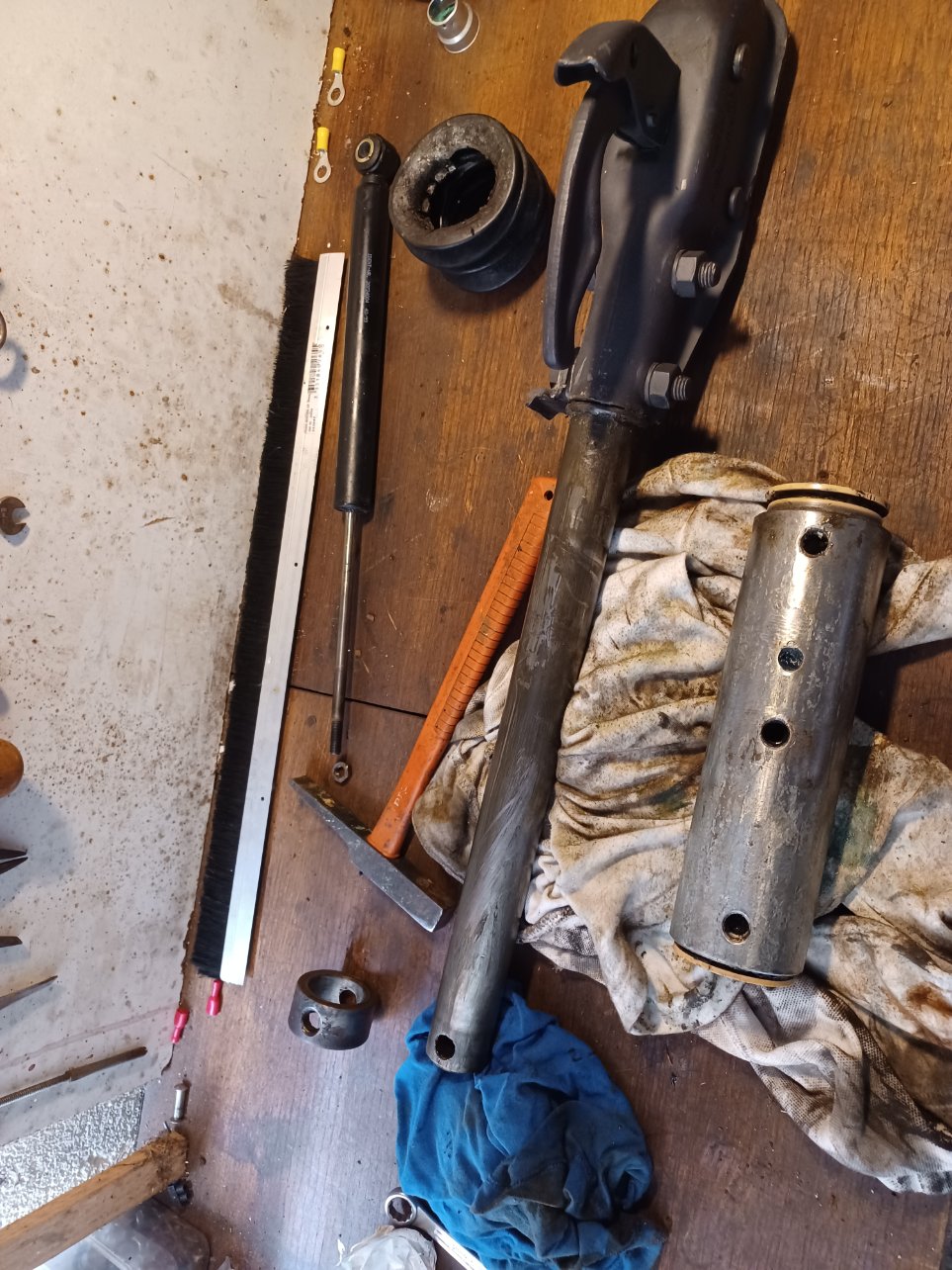 Je sors la barre de timon pour changer le soufflet et remettre la bague d amortissement de traction.