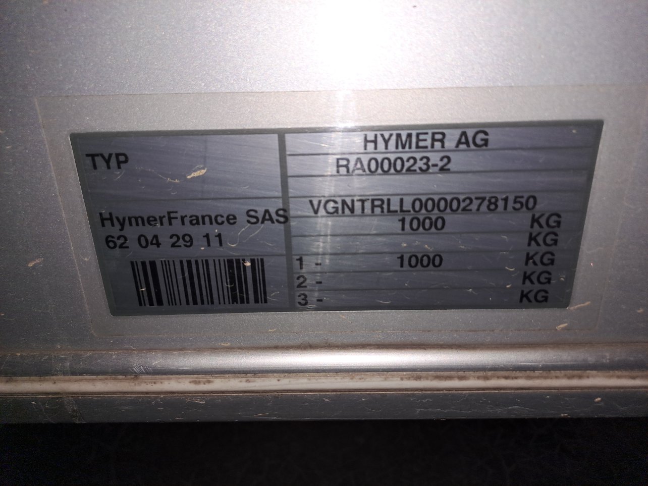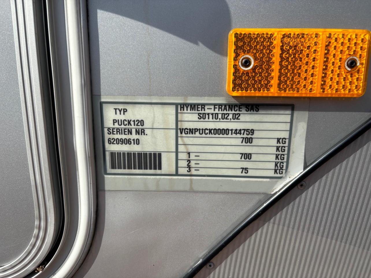 Si je lis bien la plaque, il s'agit d'un PTAC de 700 kg, mais le 75 kg en 3 ?? La flèche ?