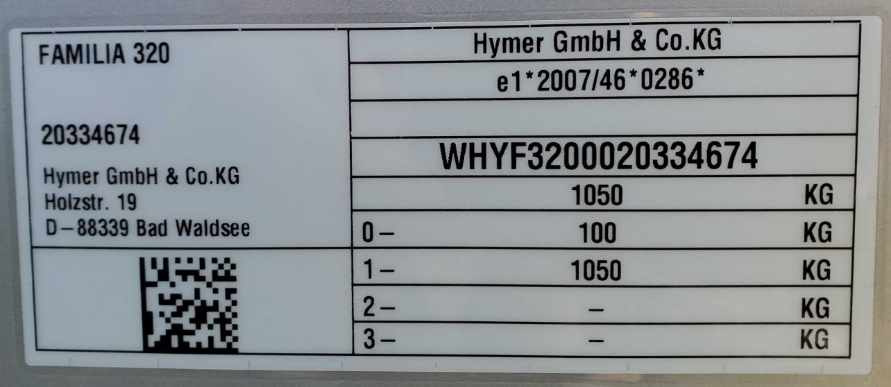 Voici la plaque de marque de notre Familia 320 GT de 2022 :