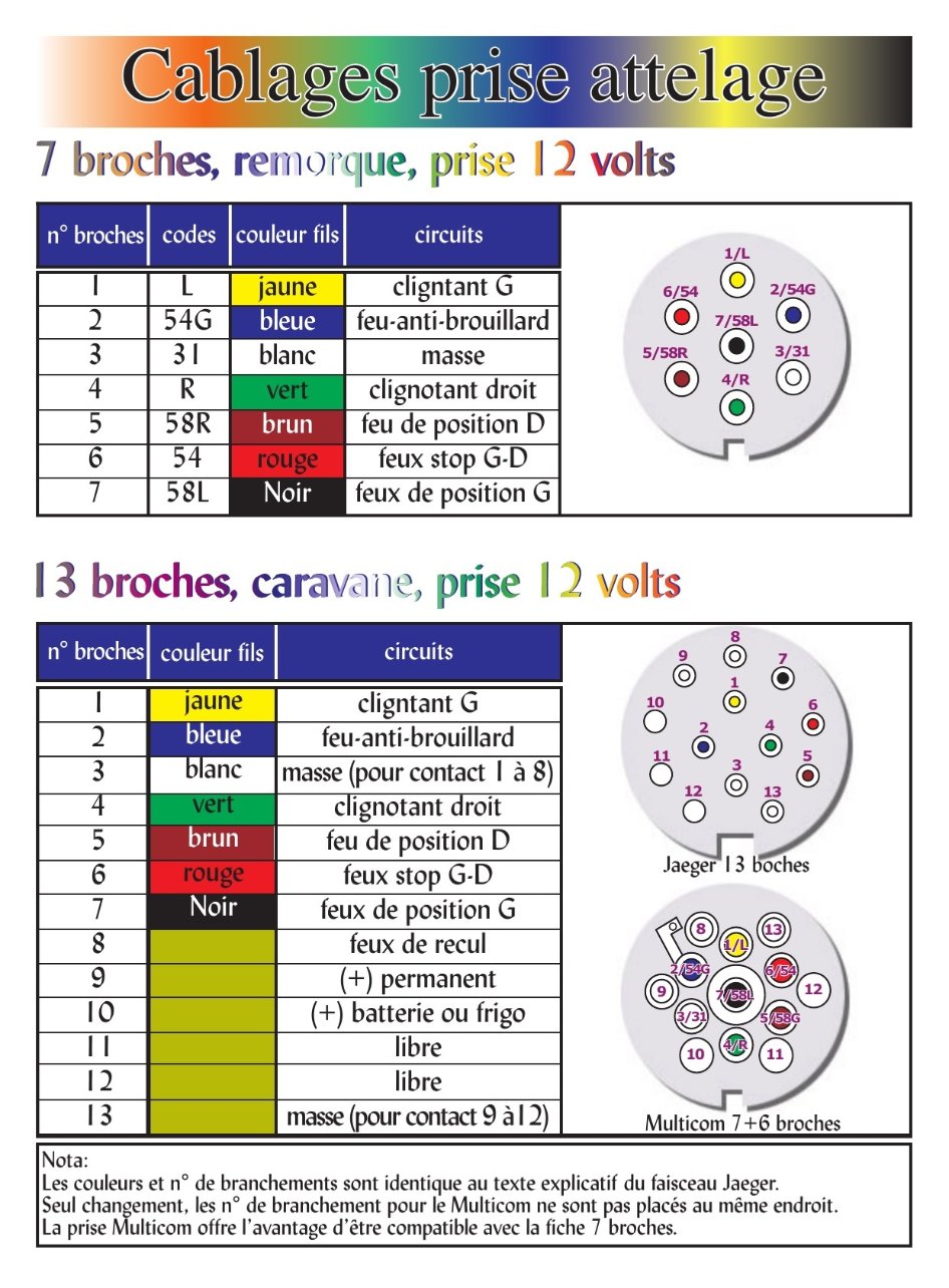 La voiture en 7 broches et la caravane en 13, possibilité du 12 V ??