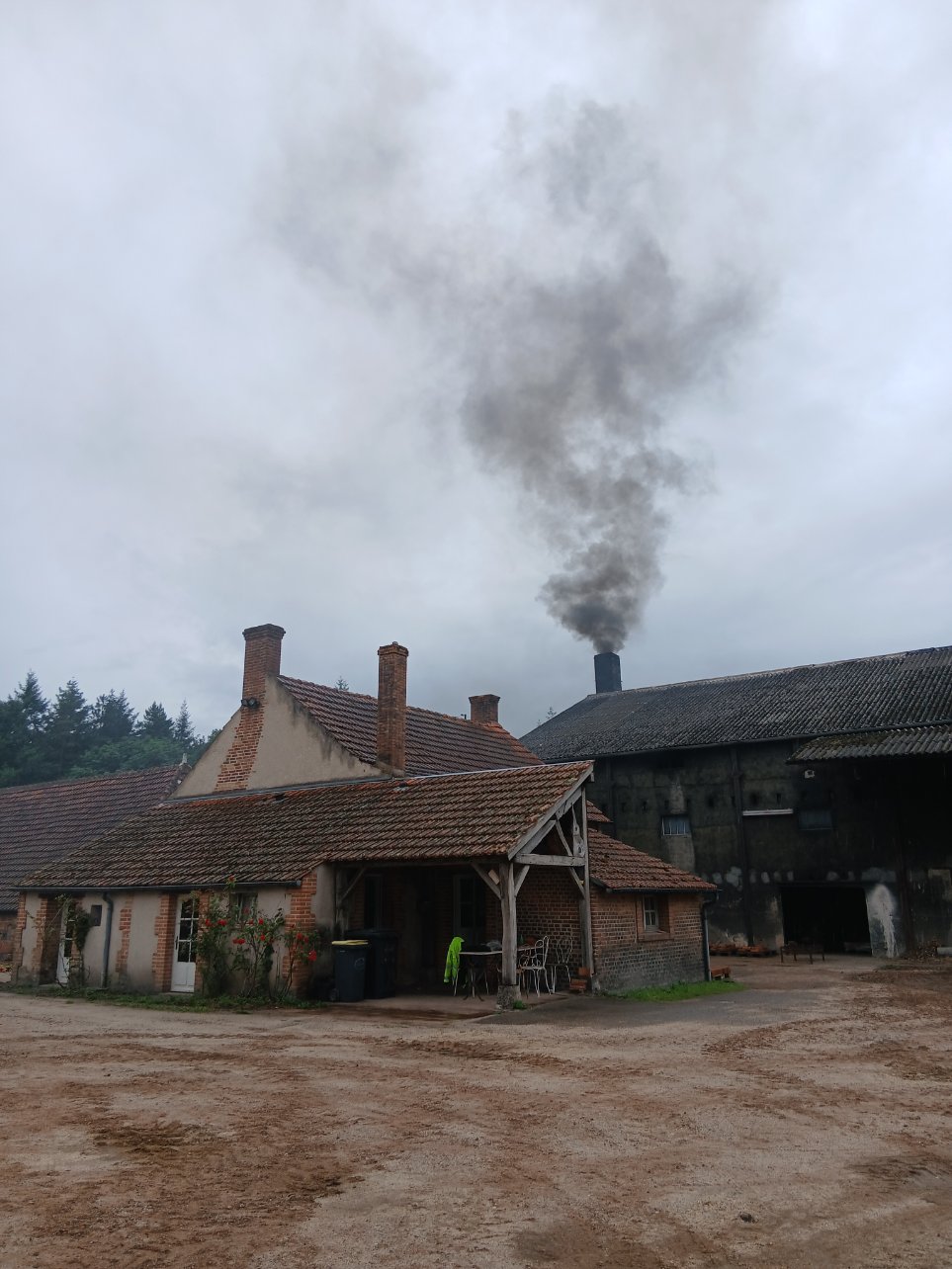 Le four de la tuilerie en chauffe, nous pourrons le visiter demain quand il sera froid :