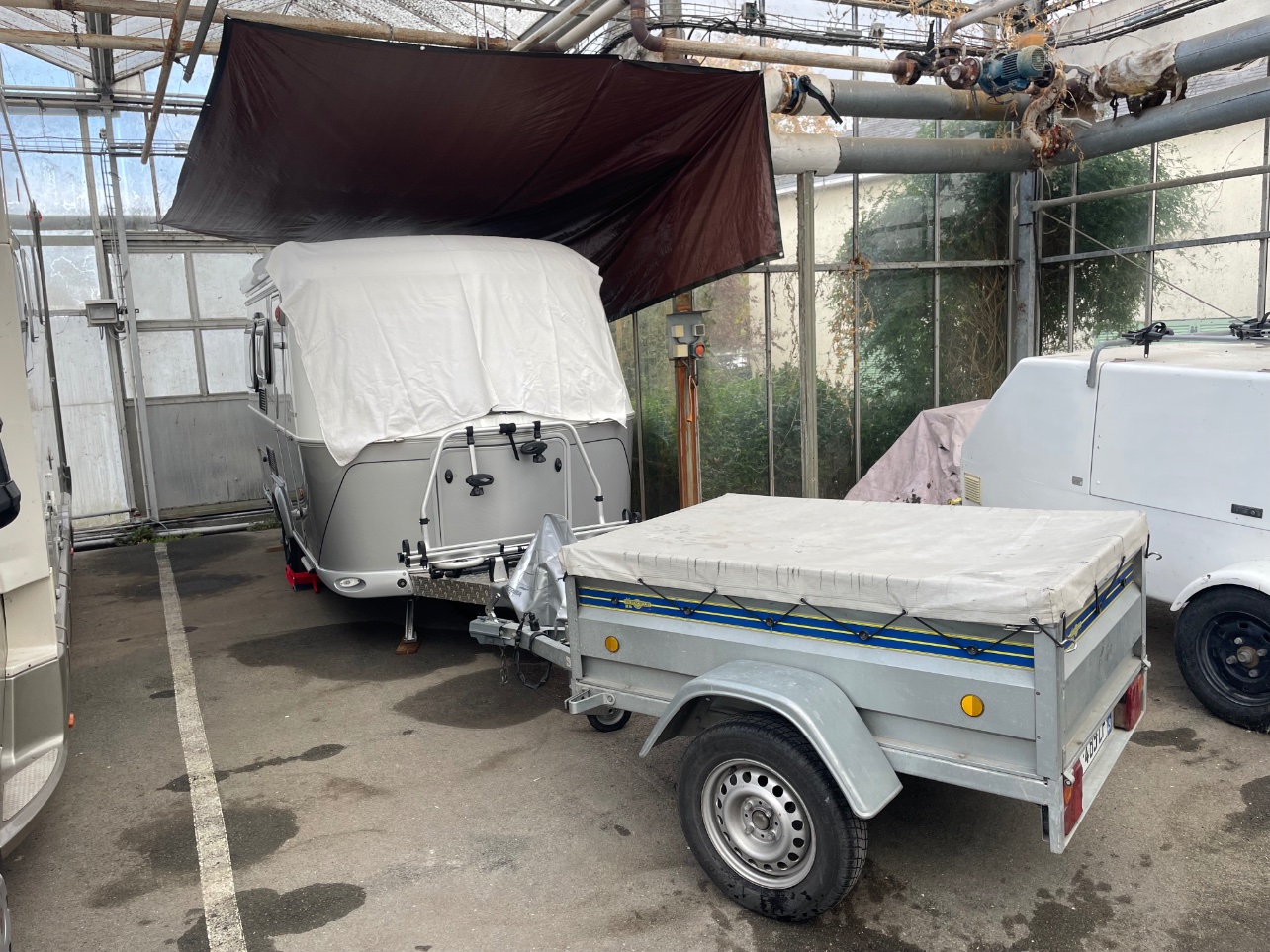 Ma Triton 430 dort sur sol béton dans une ancienne horticole à côté de 50 véhicules de Loisir