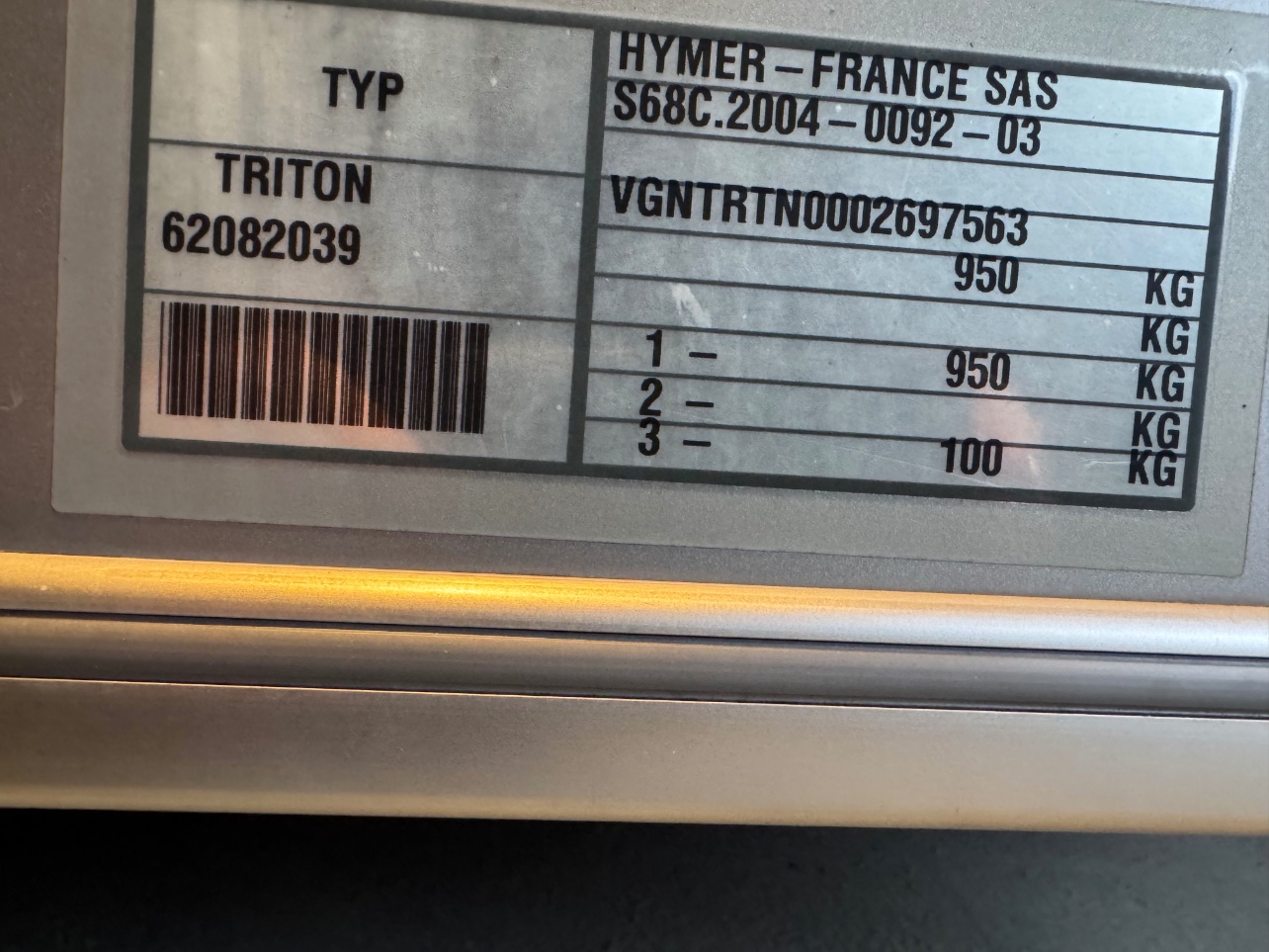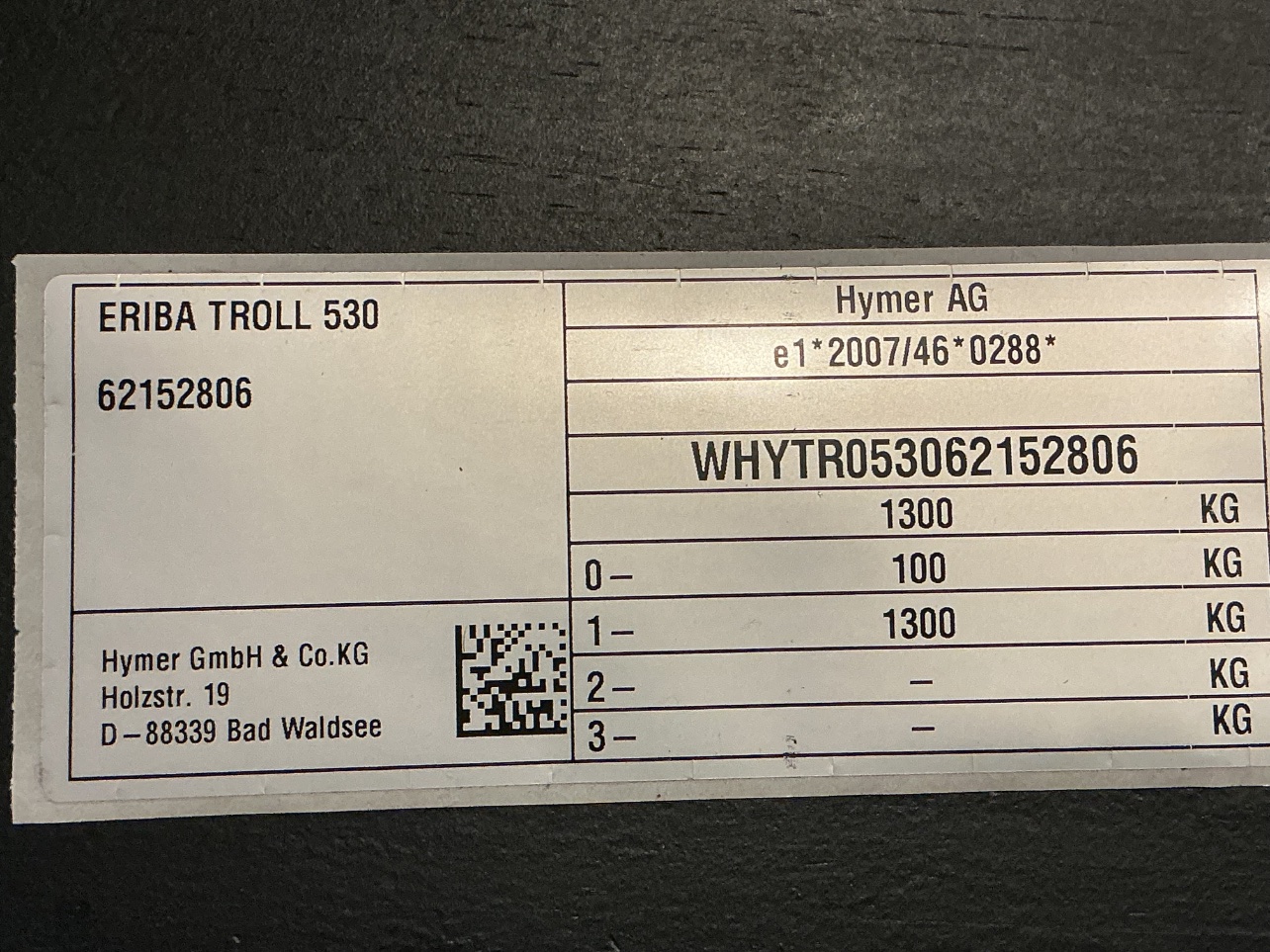 Voilà, la photo de la plaque de mon Eriba Troll D (suisse edition ?)