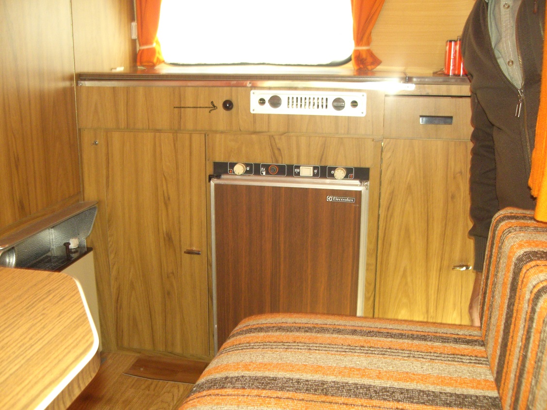 et l'intérieur nous avons bien l'impression que tout est d'origine et en super état, même le chauffage marche donc le 1er Novembre on y va, reste à décider ou ? un camping 'normal' sans chichi à la mer ? j'ai dessiné une fléche sur la photo intérieur vers une boule avec tige nous ne savons pas à quoi ca sert (ouvrir la ventilation?)
