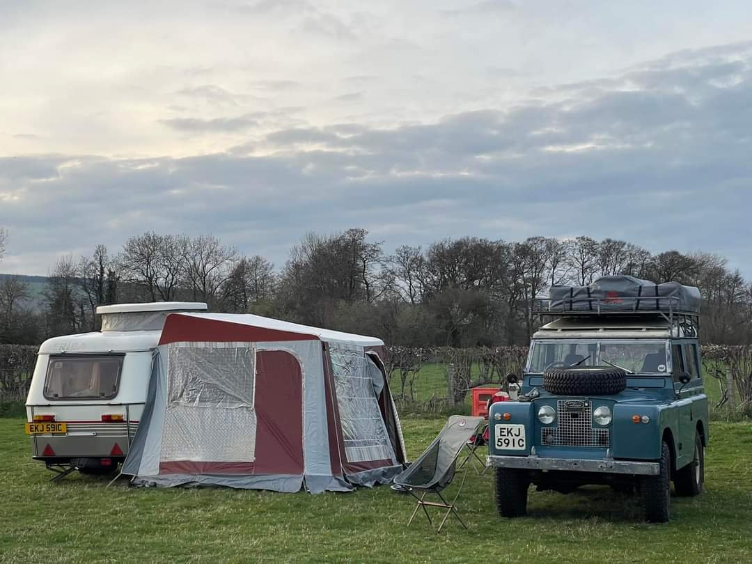 Modèle de caravane : Familia de 1992 + Defender 110 de 1998. Land 109 de 1972.
