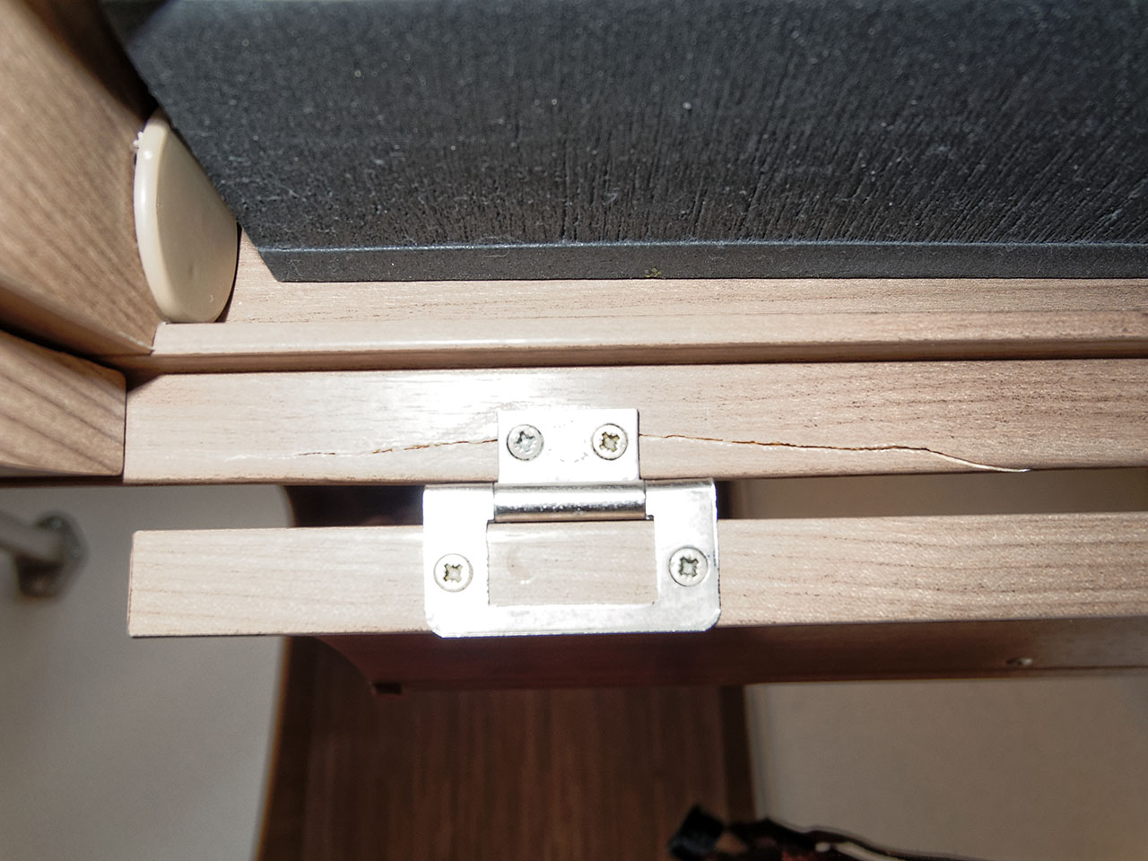 J'"ai un petit problème, J'ai une Triton 430 achetée neuve en 2013, je constate que le bois au bas des charnières des trappes de rangement intérieures se fend ?