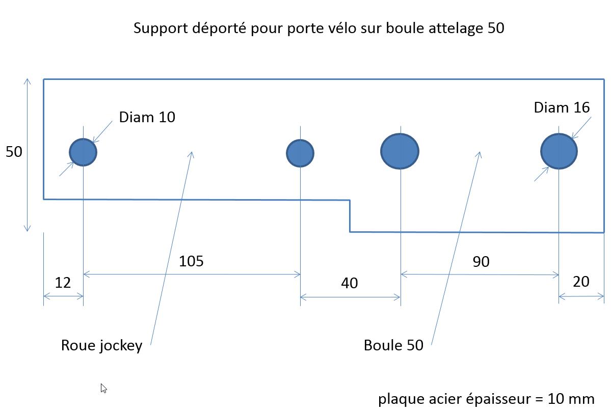 Un ami du forum m'a demandé de lui faire une platine à fixer sur la roue jockey, pour y boulonner une boule d'attelage en vue d'y fixer un porte vélo, comme le post plus haut.