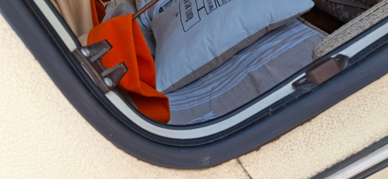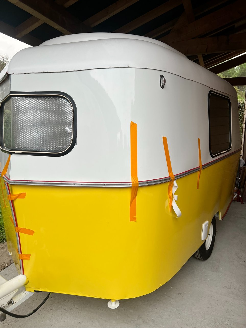 Photo 1 vue de puis l'intérieur de la caravane : jointure des joints