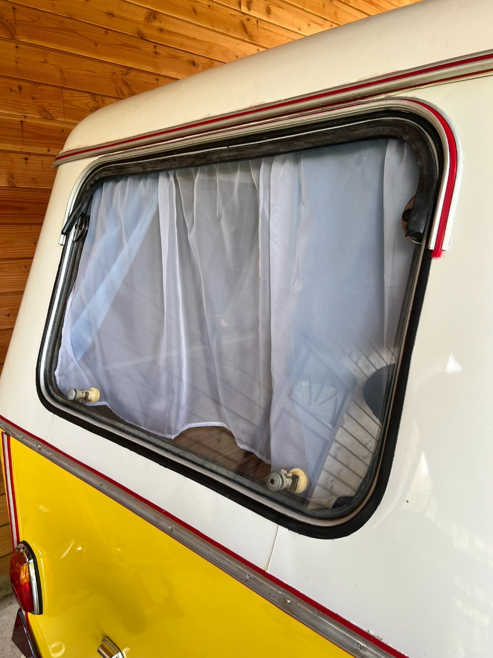 Si cela peut aider pour tes joints de fenêtre. Voici la baie arrière de ma PUCK de 1986. Joints qui se rejoignent ainsi :