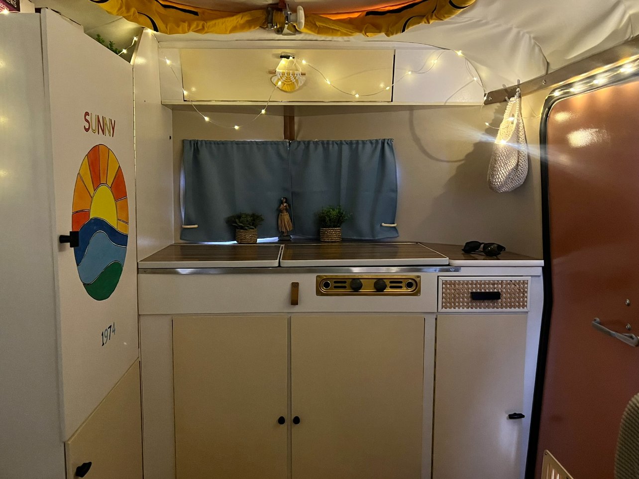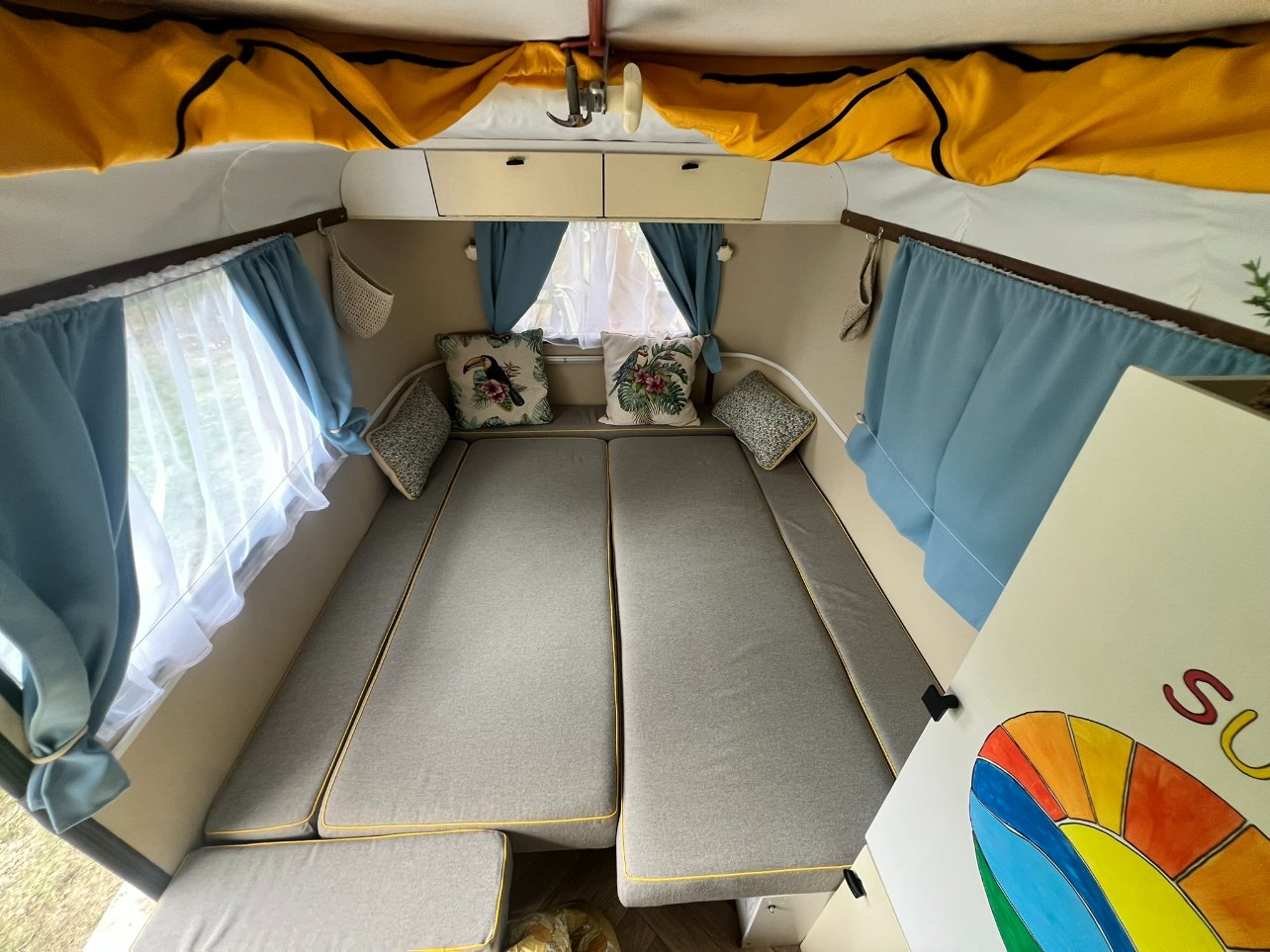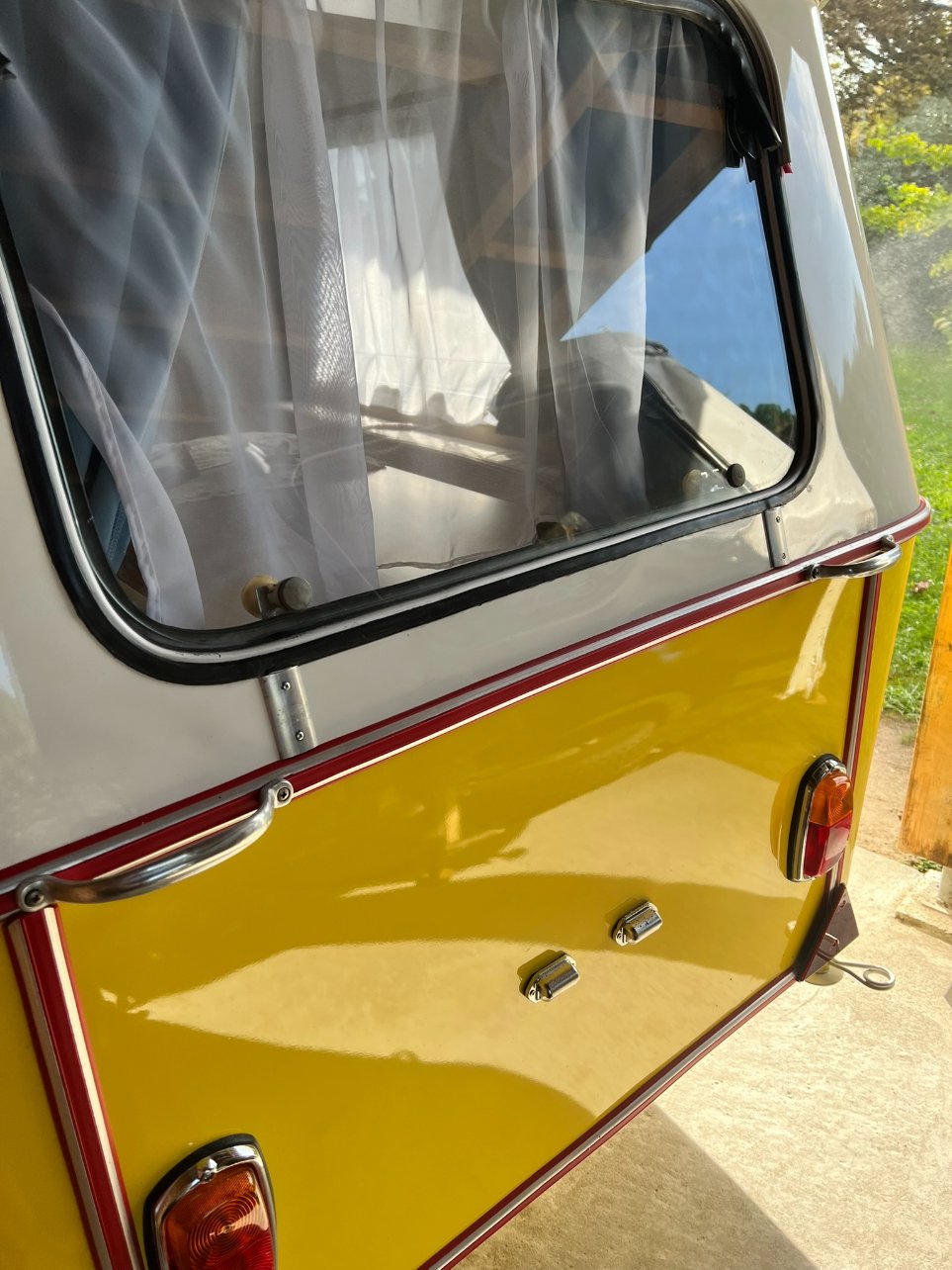 Et puis, qui dit "rétrocamping" dit... "dodo dans la Puck"... bon j'ai perdu mon mari en chemin, je ne pense pas qu'il se décide à y dormir, pfff, tout ça pour ça... ben m'en fiche, ce sera ma garçonnière (je sais pas comment on dit pour une fille) une caravane de celib' nah!!!