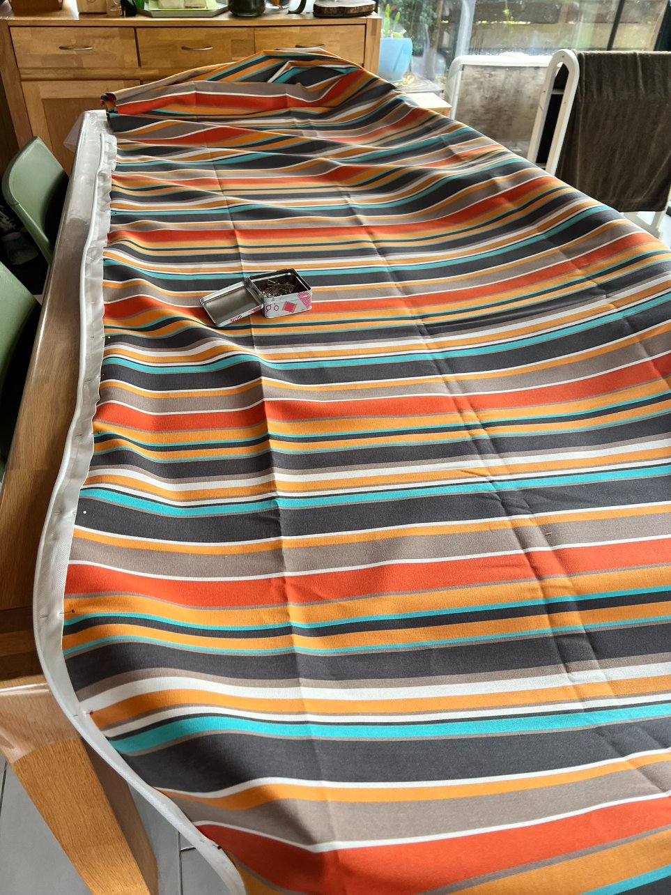 Tout d'abord pour ce week-end madame a besoin d'un extérieur, je n'ai pas eu le courage de déballer l'auvent d'origine que j'ai récupéré sur l'autre Puck et il me semble qu'il faut des fixations supplémentaires pour la carrosserie (donc je tremble). Du coup j'attaque la réalisation d'une solette en toile et merci à ceux qui m'ont donné les dimensions des leurs.