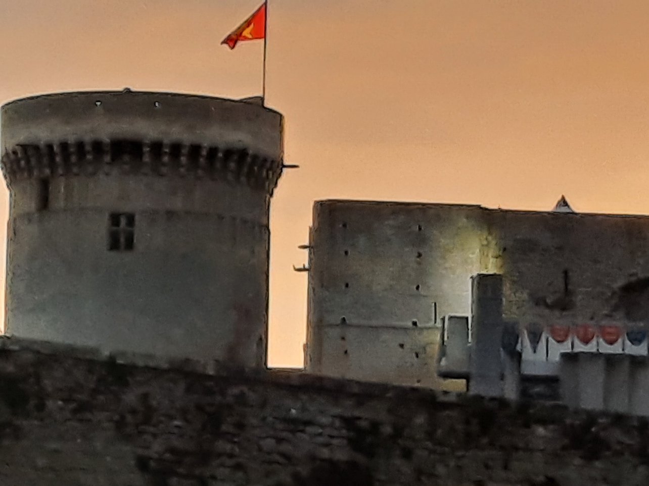Au camping de Falaise, au pied du château, ACSI 16€, après une nuit d'orage le temps retourne au : Sun :