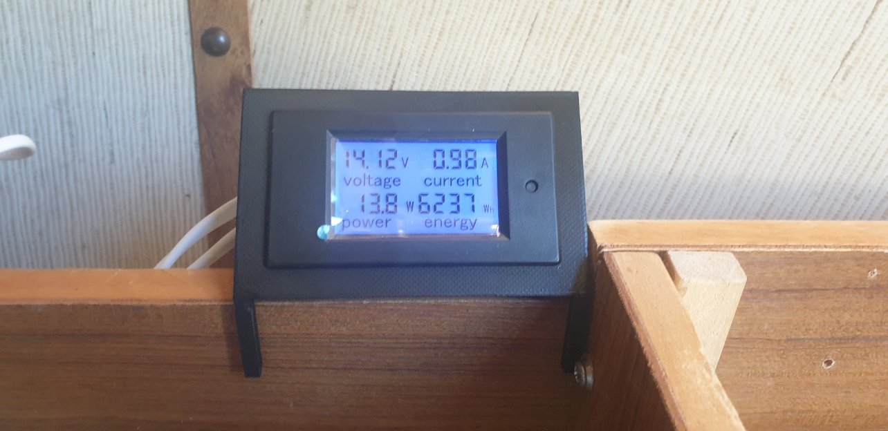 La seconde grosse modification ça a été de poser un wattmètre pour mesurer la consommation de tous les appareils. Avec l'imprimante 3D j'ai imprimé un support mais malheureusement il n'était pas assez solide et n'a pas survécu longtemps. Je ferais une photo quand j'aurais réalisé la version définitive. J'ai aussi posé un second wattmètre qui lui mesure uniquement la consommation du convertisseur 12V/220V: