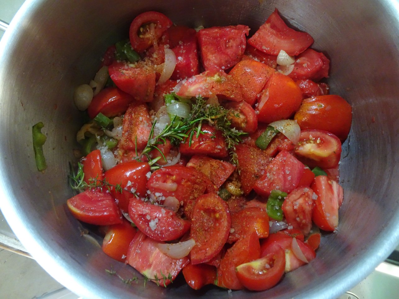 Voilà c'est parti pour la cuisson. Ensuite je m'attaquerai au tomates farcies pour le congélateur pour cet hiver.