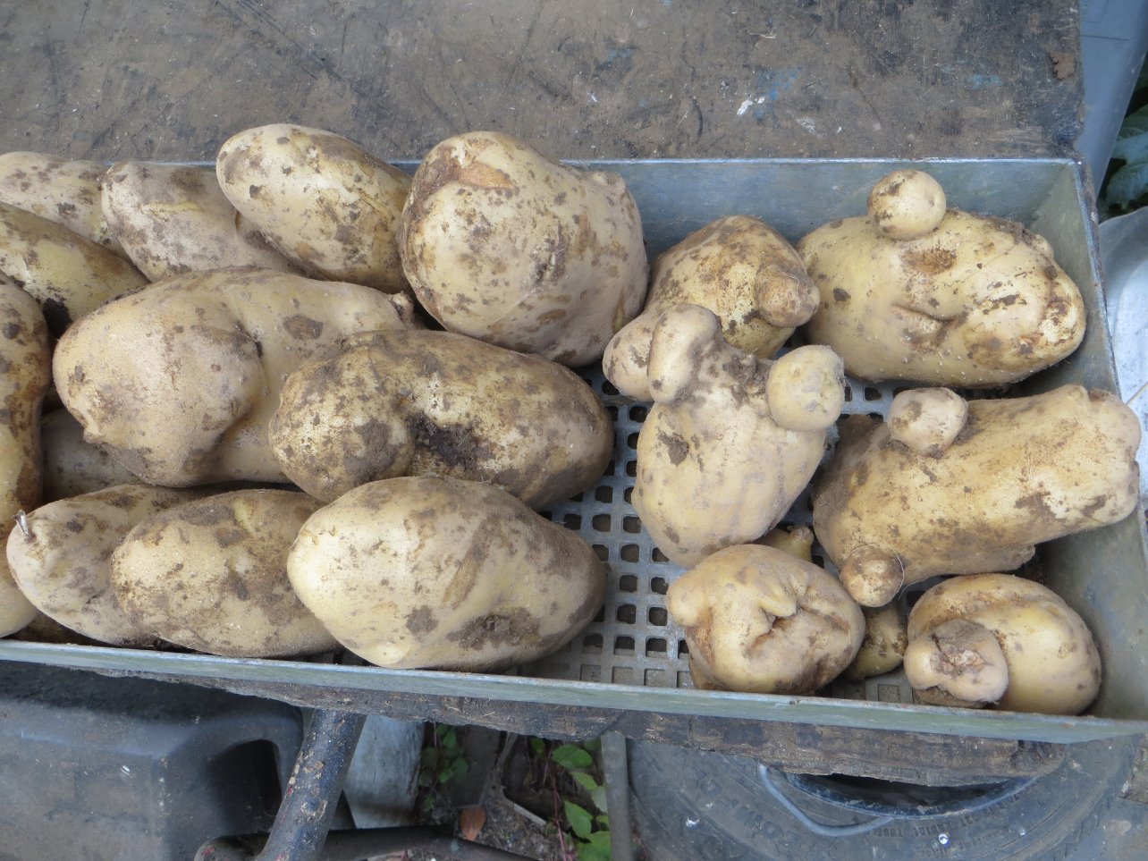 Avis au jardiniers confirmés, pour quelle raison sur un pied de pommes de terre j'ai ces formes bizarres sur mes patates ???