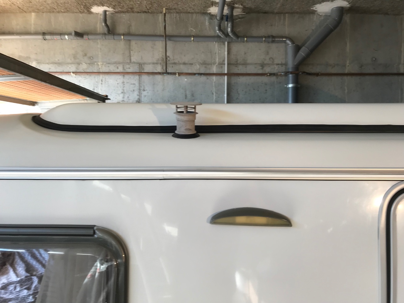 Petit désagrément sur le toit de mon Eriba Pan Familia 1991: le joint du "toit champignon" s'est décollé sur 80 cm en soulevant le "champignon". J'ai remboîté le joint, nettoyé sommairement cette partie de joint et de toit (un mélange durci de terre et de crasse avait fait office de colle), et poursuivi mon chemin sans nouveau problème (normal, si on choisit une Eriba c'est bien pour ne ne pas avoir de problème...).