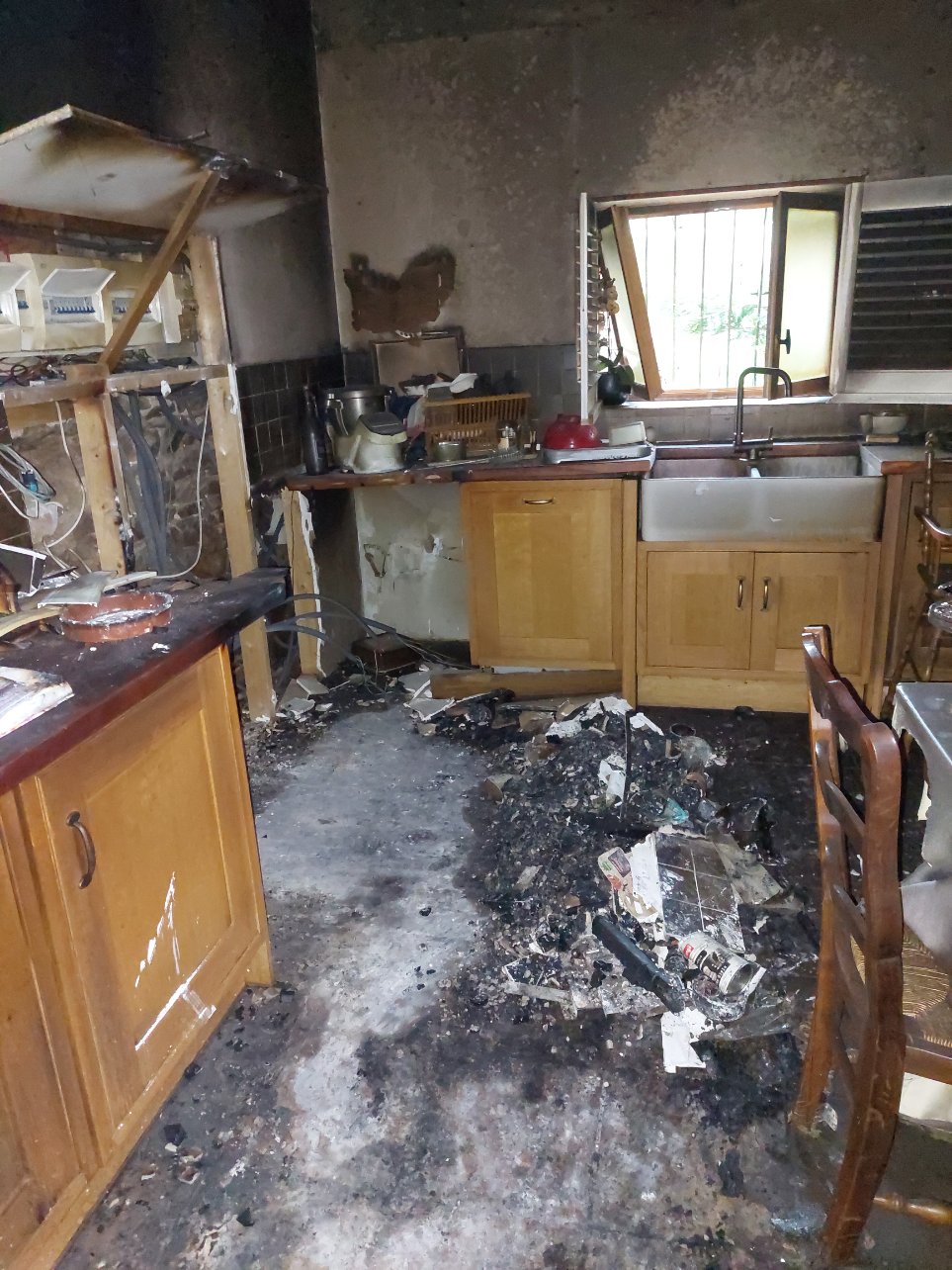 Hier matin un incendie a ravagé une partie de ma maison normande ( la cuisine , l'office et du sale partout )