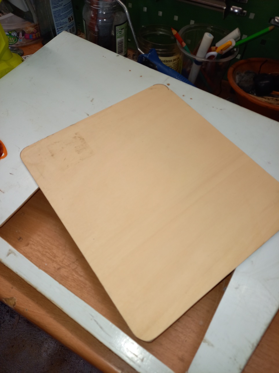 Ce matin pâte à bois pour masquer les agraphes et les anciens coups