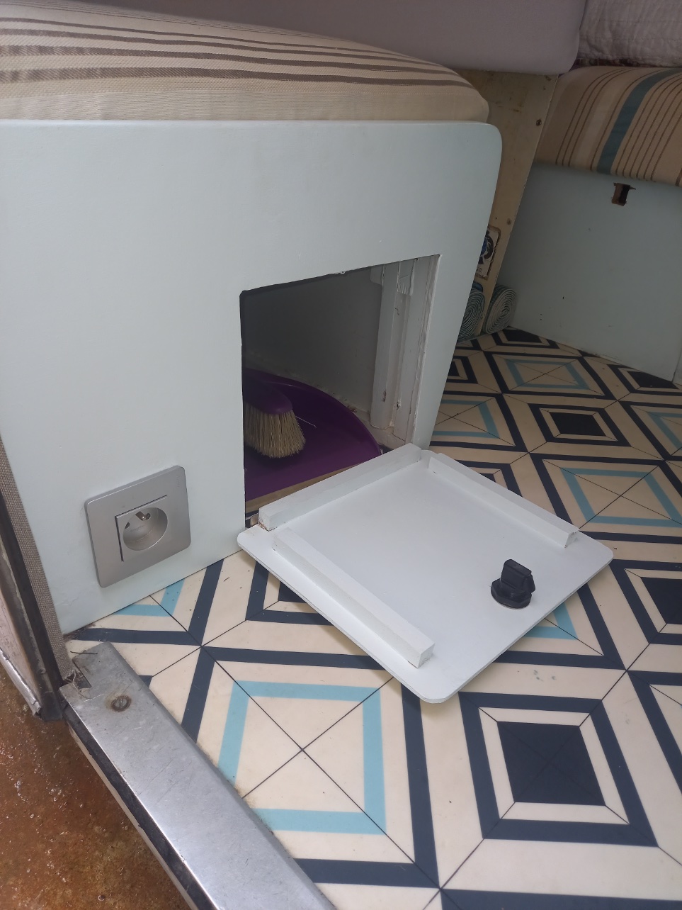 Remontage de la façade avec sa nouvelle trappe et déjà la pelle et la balayette ont trouvé