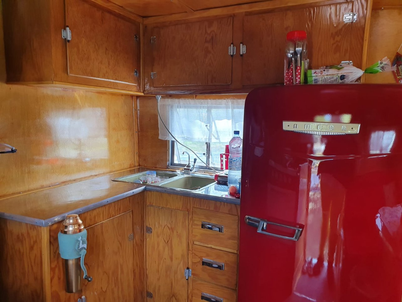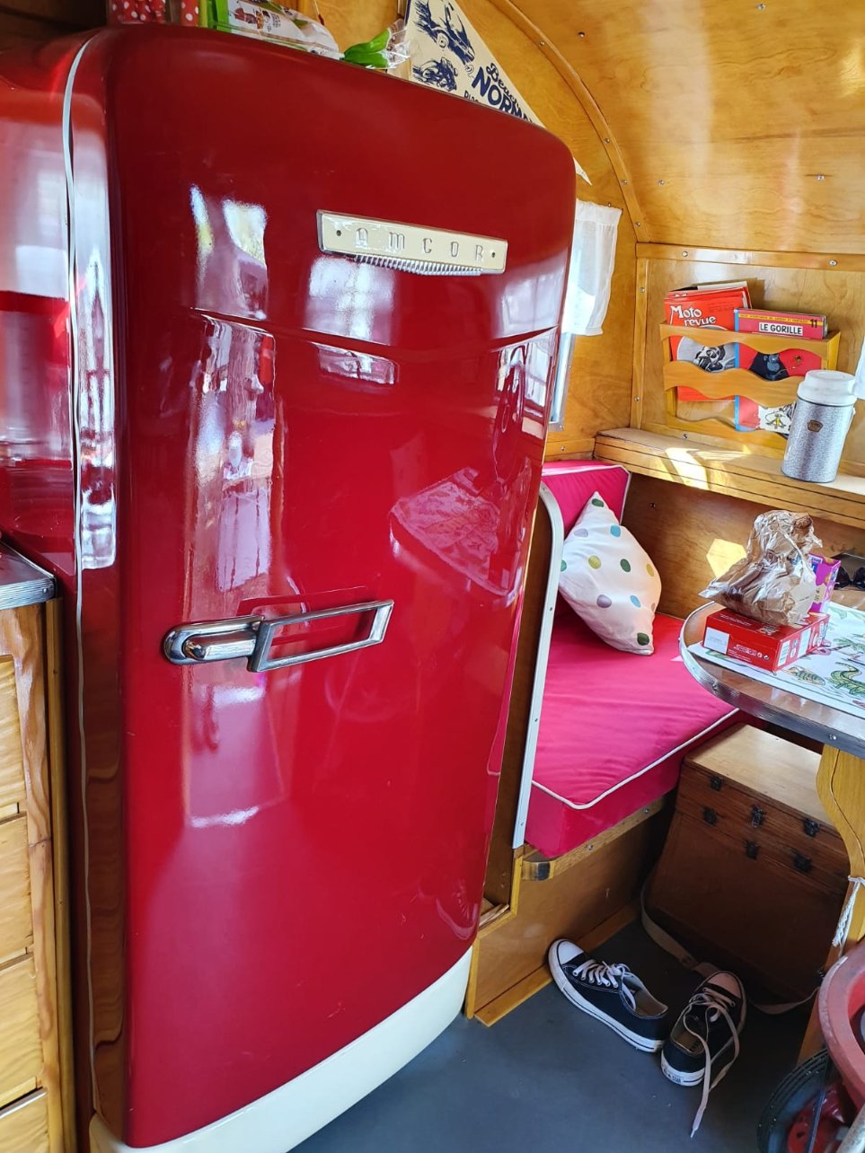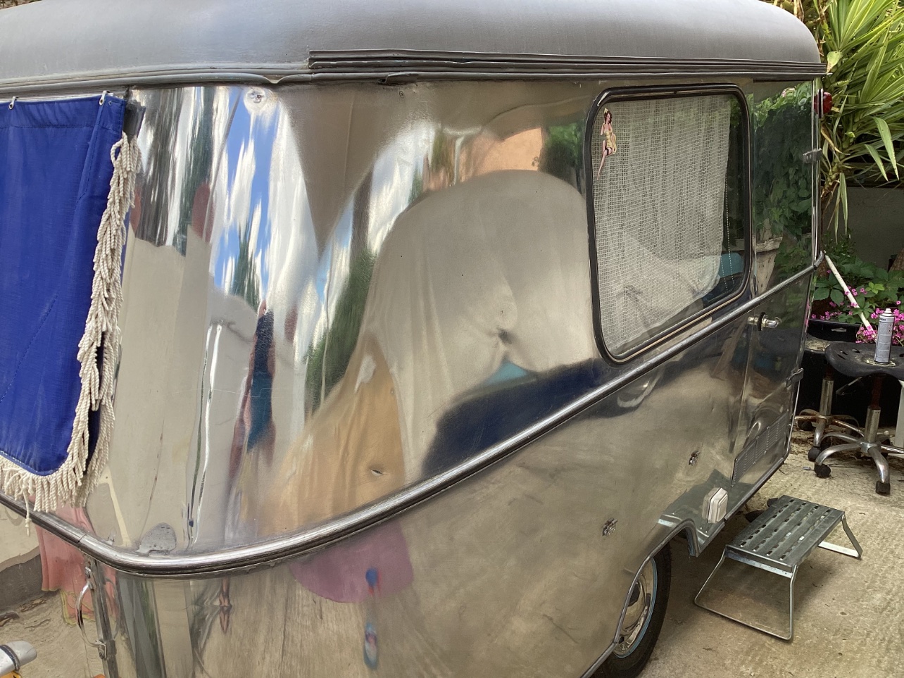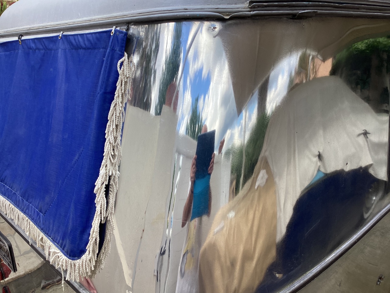 La dernière arrivée tout droit des US une AIRSTREAM de 1959 en cours de ponçage et de restauration, il y a du boulot