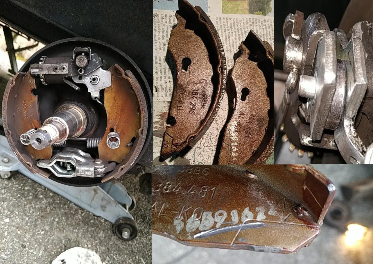 Ci-dessus, exemple de freins à tambours avec rattrapage automatique.