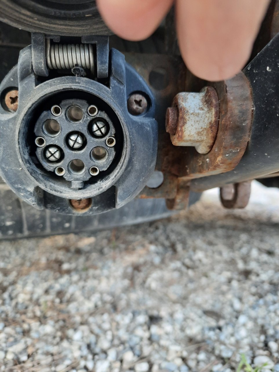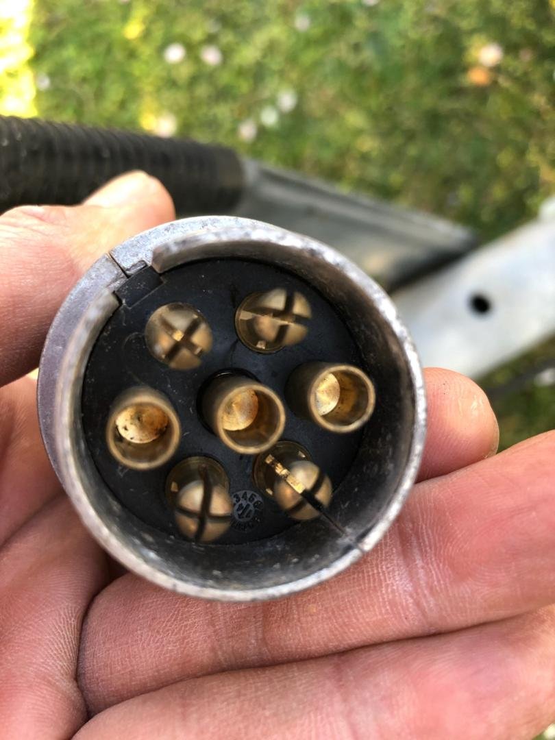 J'ai bien lu les posts sur ce qu'il y a à vérifier, il va y avoir quelques réparations à faire c'est sûr. Mais pour le retour, les pneus ont 3 ans (et stockés à l'abri l'hiver), je pense que ma prise est compatible avec sa 7 broches, je vous joins des photos pour avoir votre confirmation (si quelqu'un a le temps de s'y intéresser...). J'ai aussi mis des photos du bas de caisse, je ne vois pas de rouille mais je vérifierai bien sur place. Le vendeur m'a bien dit qu'un des 4 pieds était fichu, il utilise un petit cric pour compenser qu'il me laisse avec. En tout cas ce vendeur me met en confiance, contrairement à tout ce que j'ai pu voir le mois passé. Et puis surtout c'est la seule caravane dans mon budget qui a la capacité d'accueillir notre famille et qui est suffisamment légère pour être tractée par notre voiture.