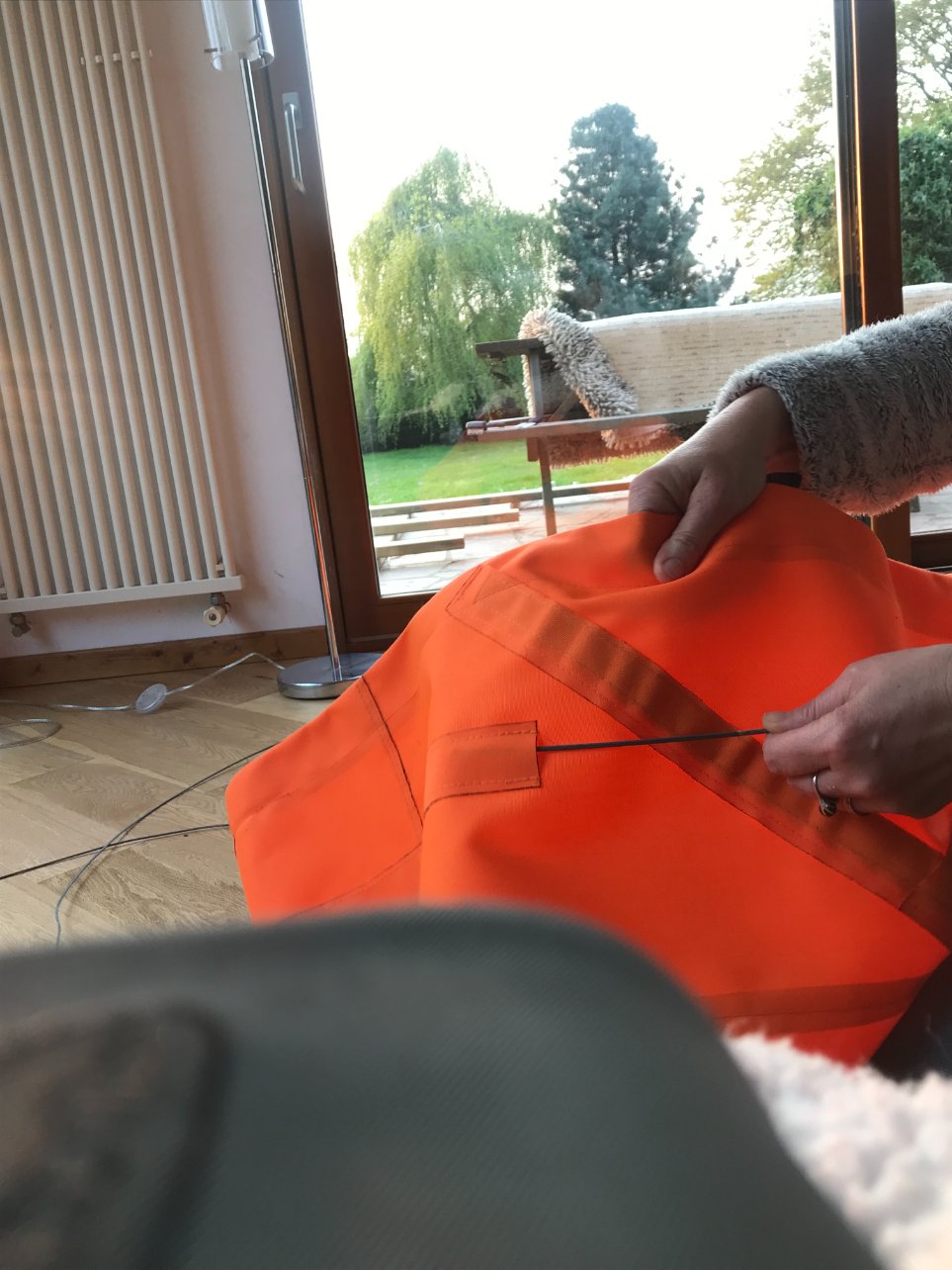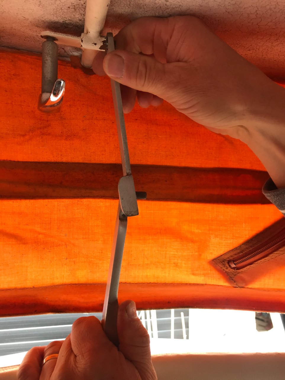 Passage des cables dans la nouvelle toile de toit, et pendant qu'on y est, découpage d'un gabarrit au cas où nous prendrait l'envie de réisoler le ciel de toit plus tard...