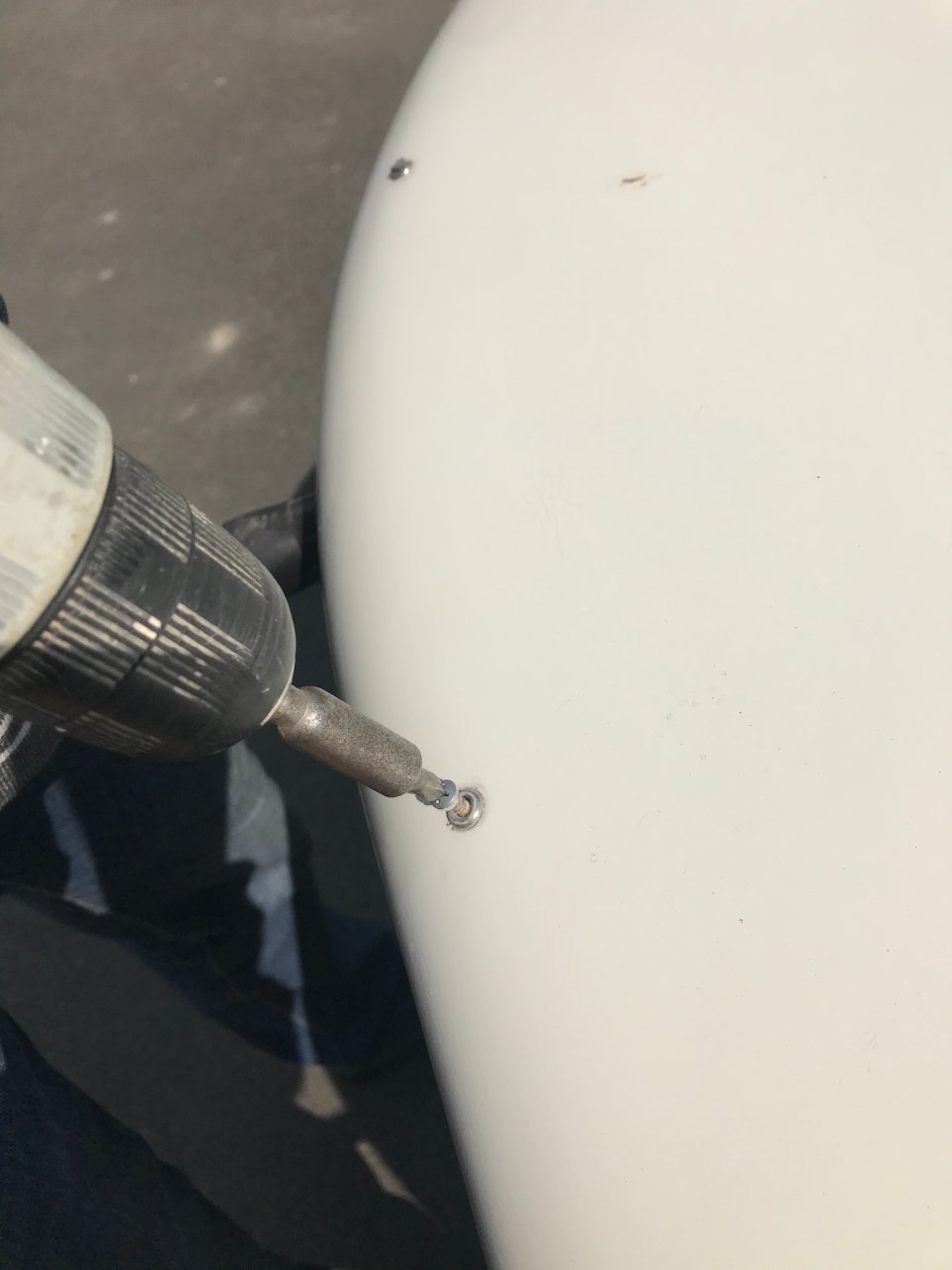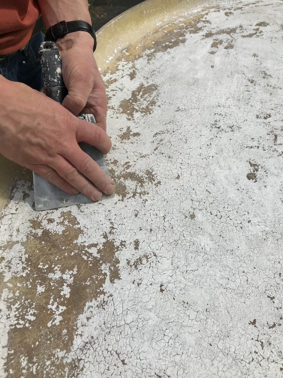 Puis décapage de l'intèrieur du toit du champignon, ponçage et remise en peinture: