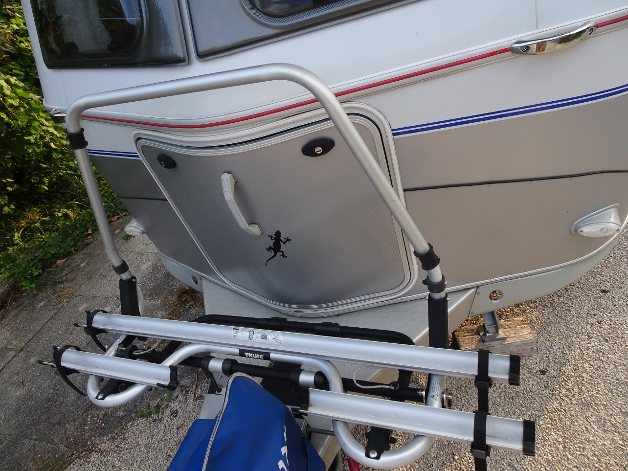 Surprenant que l'on ne puisse pas mettre un porte-velos Thulé sur le timon d'une Triton 2009. C'est un timon carré comme sur notre Spuck et notre Pontos sur lequel j'ai installé 2 porte vélo VAE. Faut juste le support spécial Eriba.