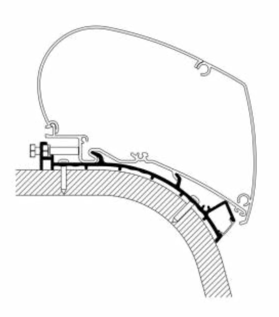 Le vendeur me dit que l’adaptateur Eriba Touring 820 THULE n’est pas compatible avec mon arrondi de toit (flèche verte)