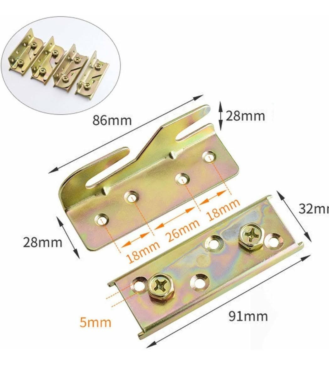 Lot de 4 Support de Rail de Lit, Fixations de rail de Lit Connecteur de Fixation de Charnière de Lit connexion au Bois Charnière de Lit sans Mortaise