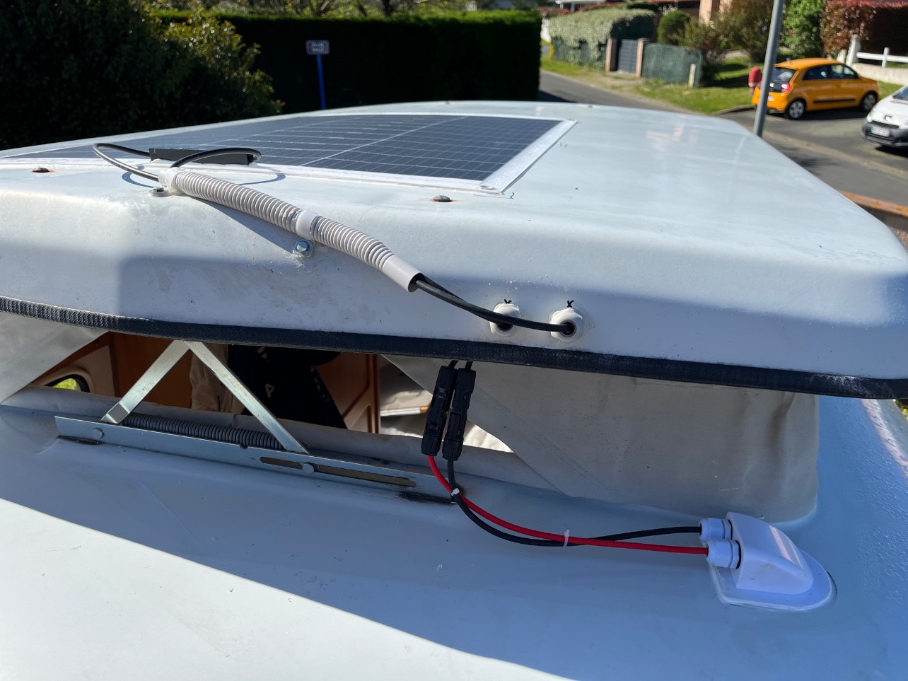 Très bien la pose du panneau solaire, je dois le faire mais j'hésite concernant le souple et surtout le collage directement sur le champignon car j'ai lu pas mal de post sur le fait qu'il faut de l'aeration sous le panneau pour éviter de le griller....mais pas facile de mettre un rigide sans percer. Pour l'instant j'ai un mobile mais le soucis c'est qu'il ne charge pas tout le temps et ne maintient pas la charge de la batterie. Aurais tu des infos la dessus.