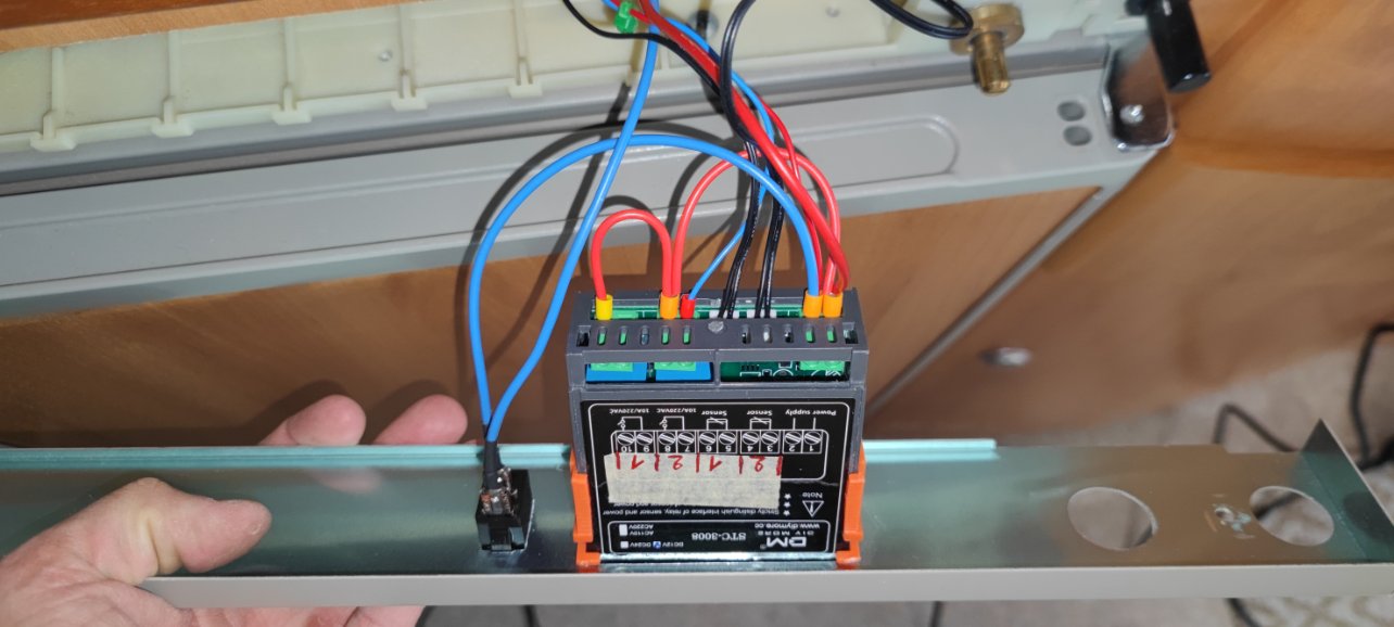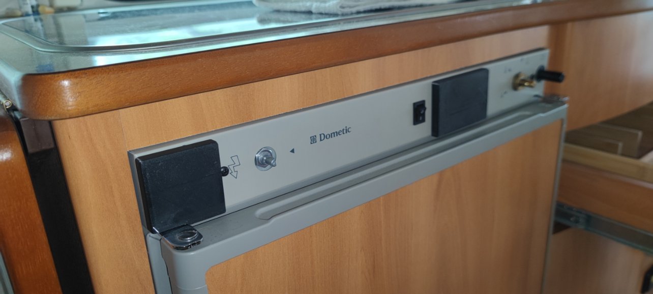 Petit bricolage complémentaire : je n'arrive pas à dormir avec la lumière verte de l'interrupteur du frigo. Elle est très forte et illumine la caravane la nuit. Le régulateur ajoute une teinte bleue et rouge. On se croirait dans une discothèque...