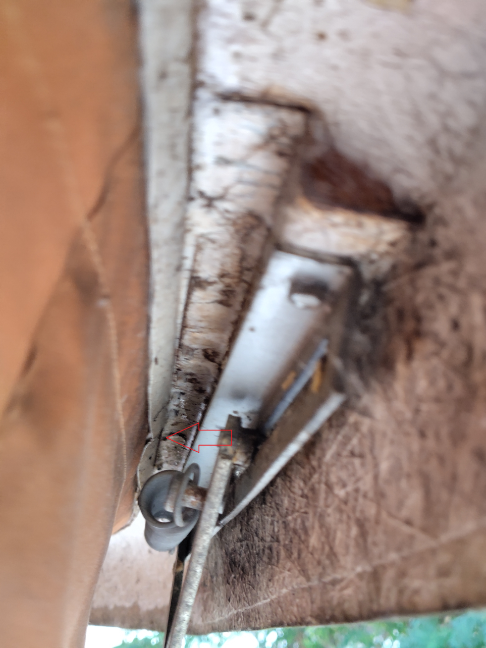 Je pense qu'elle avait eu un peu d'humidité avant que je ne l’achète, (surement ce pourquoi l'ancien propriétaire avait jeté tous les tissus inférieurs, banquettes rideaux etc.).