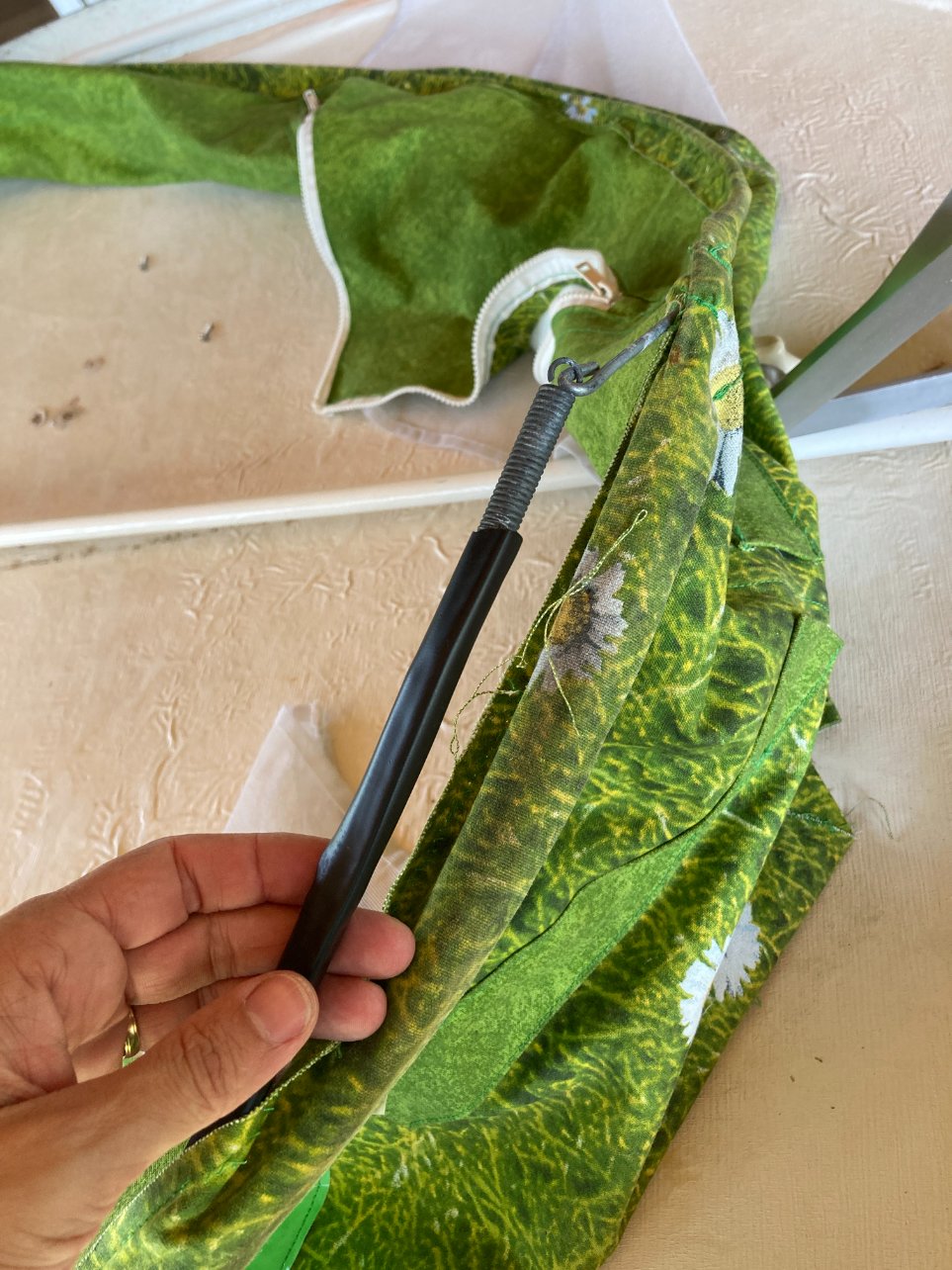 Mais sur le site où j’ai achetée il est marqué que le plastique noir n’est pas obligatoire vu que la nouvelle toile a un tissus très résistant .. Le problème c’est qu’une fois placé sous le bourrelet.. l’autre partie saute directement même à deux, j’ai l’impression que c’est pas possible.. J’ai retiré la prise du ressort pour voir si la toile rentre tout de même .. Donc c’est ce fichu ressort? qui fait son travail bien sûr .. Mais impossible pour moi de le faire passer derrière.