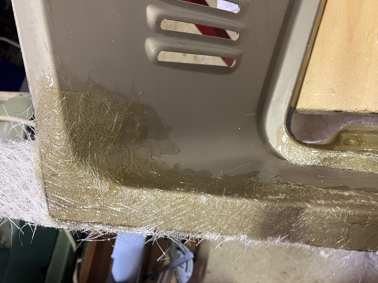 J'ai utilisé de la résine polyester et du mat de fibre de verre pour renforcer et réparer tout cela.