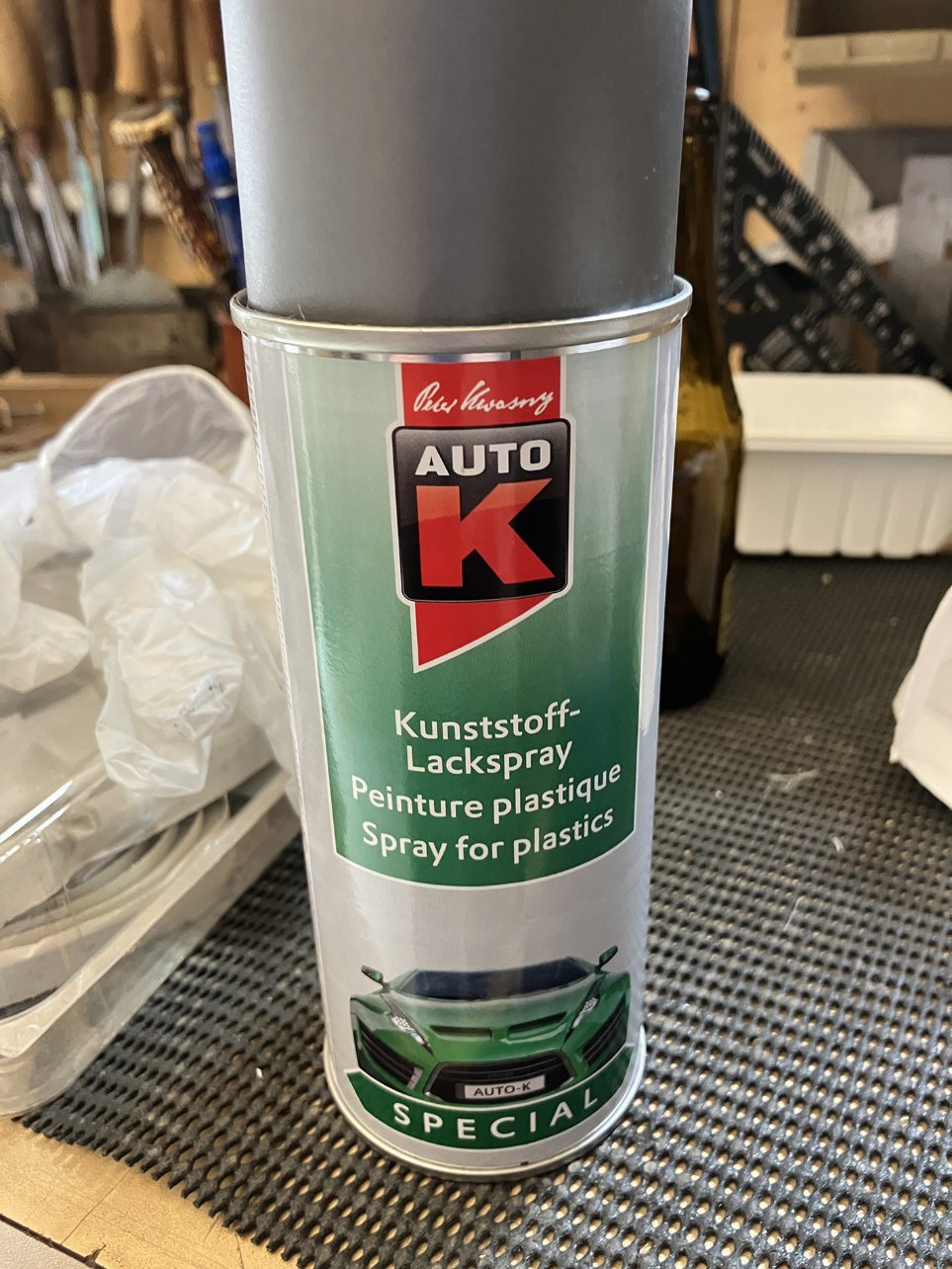 J'en ai profité aussi pour refaire la peinture extérieure du coffre avec une peinture aérosol spécial plastique (Norauto), ainsi que le système de fermeture.