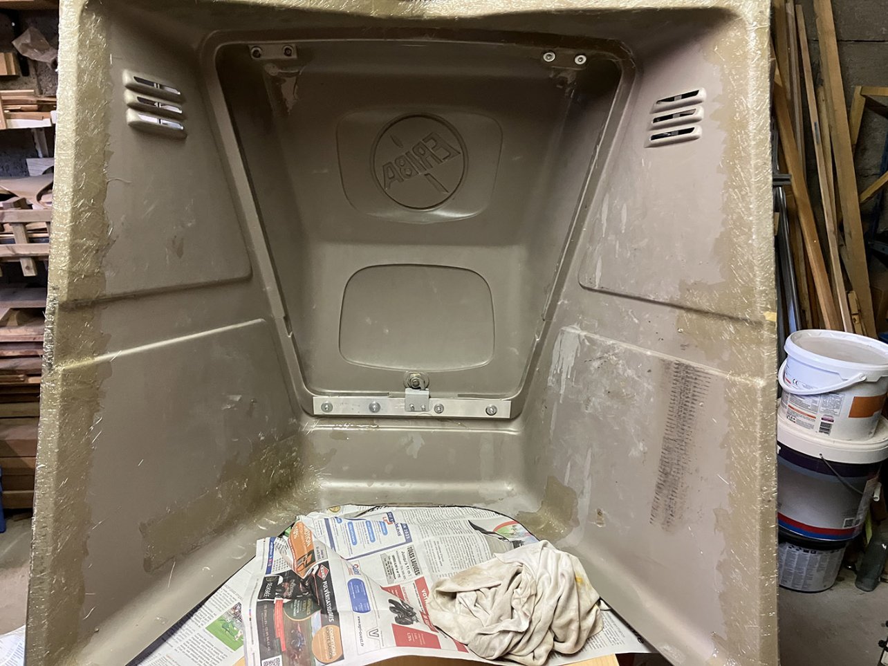 Je me suis lancé dans la réparation du coffre à gaz de notre Eriba Pan Familia. Le plastic se fissurait sur les parties fines où le coffre est vissé, il y avait aussi quelques parties qui avaient subi des chocs et donc qui demandaient réparation.