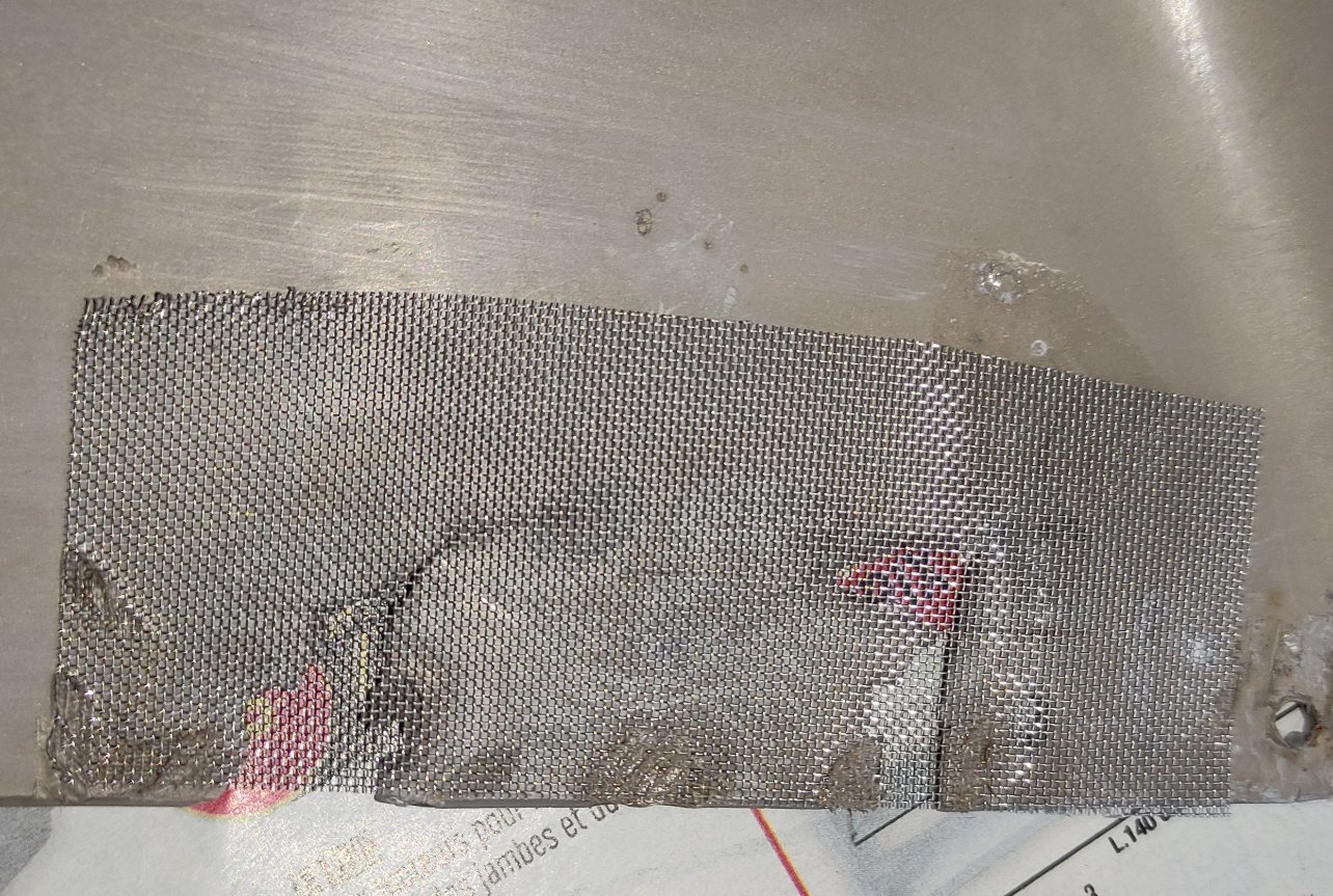 Avant Filet métallique Insertion du filet dans l'ABS avec un fer à souder (ça prend un peu de temps selon la surface à traiter...) Puis soudure à froid avec ABS liquide
