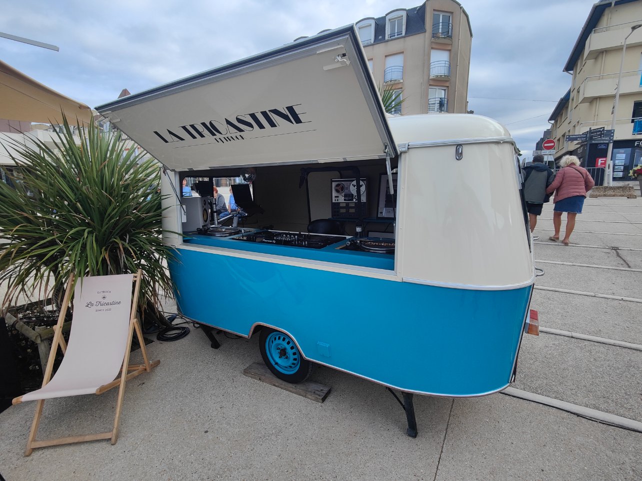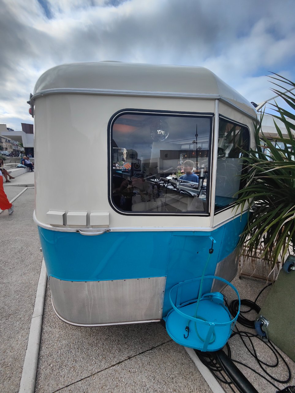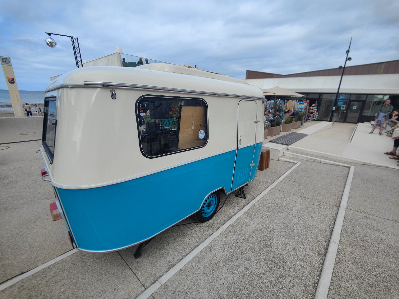 Durant ces 2000 km parcourus, j ai croisé à Luc-sur-Mer une Eriba rénovée et transformée en caravane DJ.