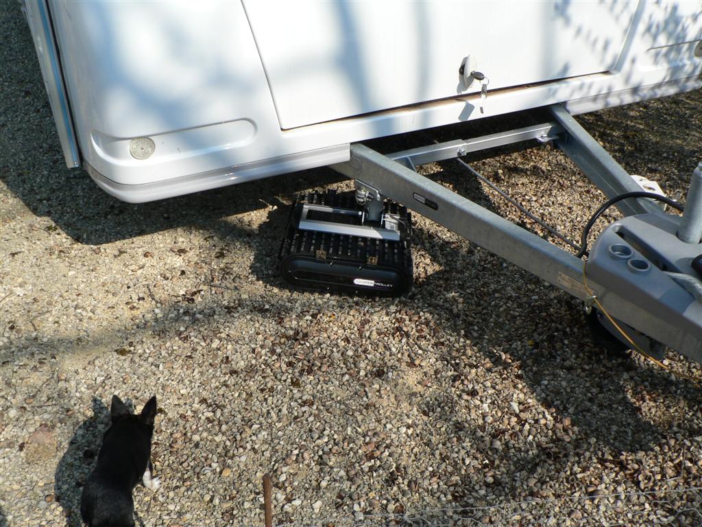 - il n'ajoute pas +/- 60 kg de charge à la caravane comme les mover roues classiques = pas de dépassement de la CU et du PTAC (pas de soucis avec les gendarmes .... ni avec mon assureur en cas accident!)