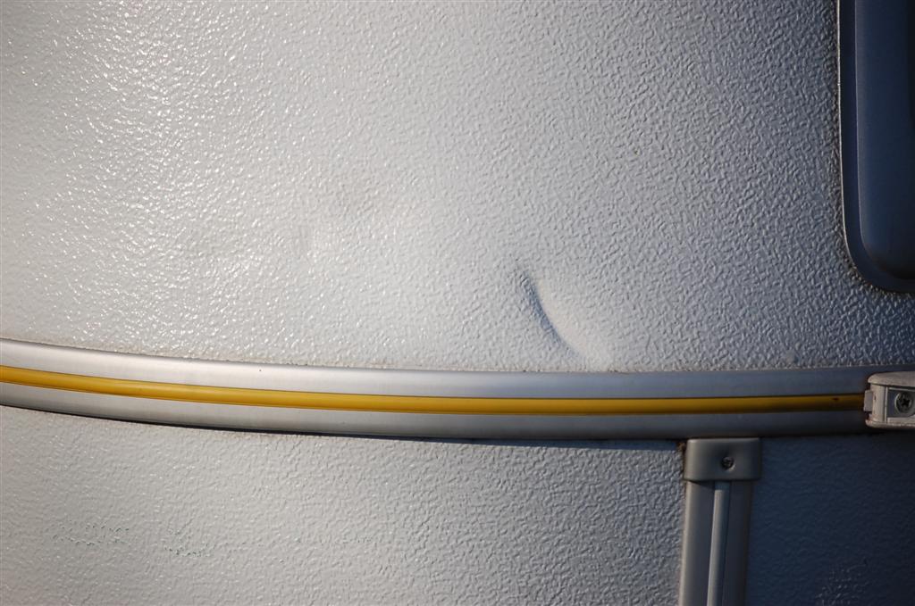 ou l'équivalent, sur 20 cm à partir de l"arrondi arrière droit pratiquement jusqu'à la fenêtre, comme c'est de la feuille d'aluminium granuleuse j'ai refait au syntofer, puis avec une petite meuleuse de modélisme j'ai refait les granulés, pour la peinture je ne connais pas les teintes.