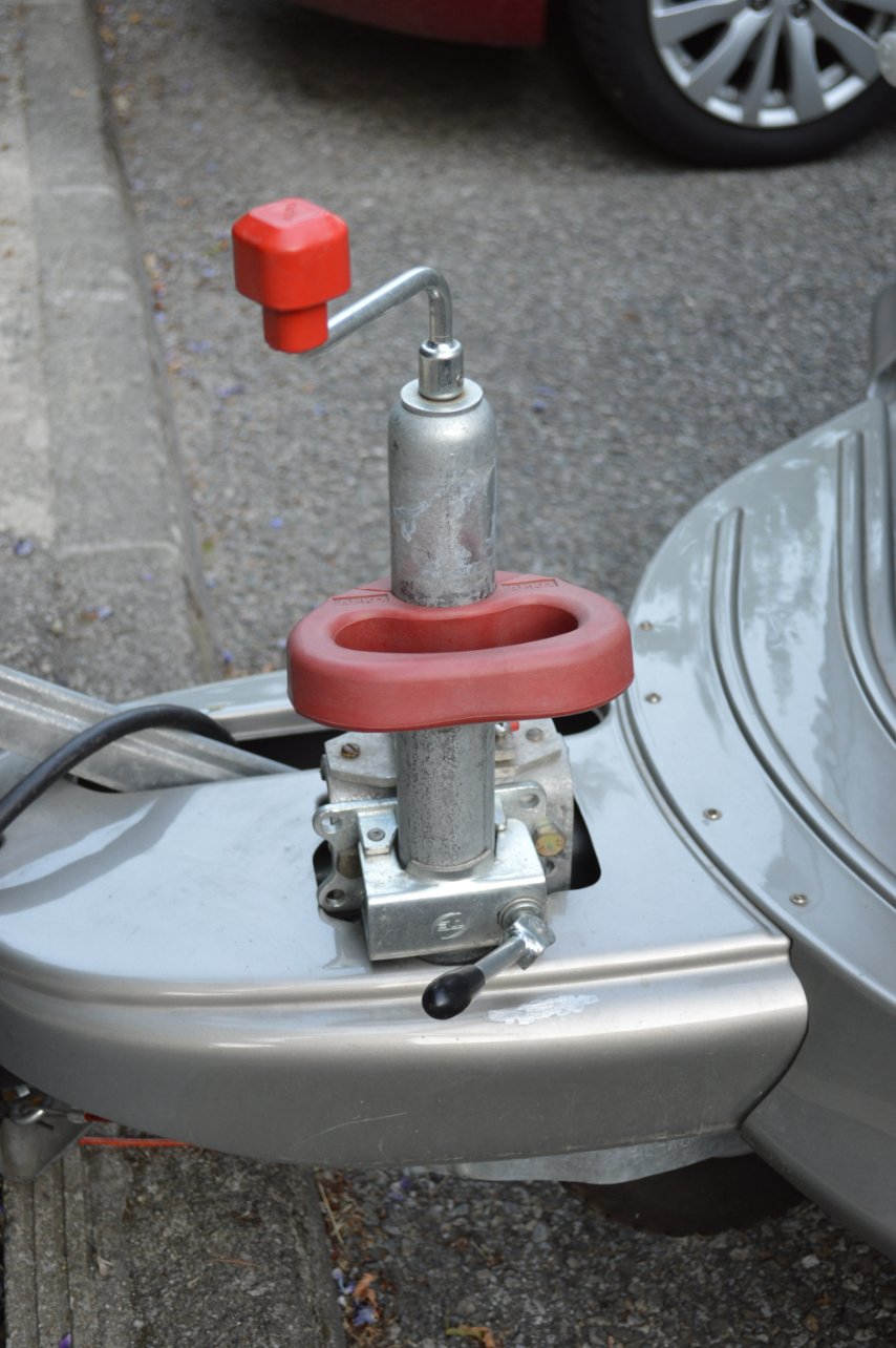 Cette poignée Al-Ko est bien pratique pour déplacer la caravane et, comme indiqué dans sa notice, elle permet également (en la réglant à la bonne hauteur en fonction de celle de la boule d'attelage) d'éviter que la roue jockey descende jusqu'au sol en cas de desserrage de la bride. Une petite sécurité supplémentaire.